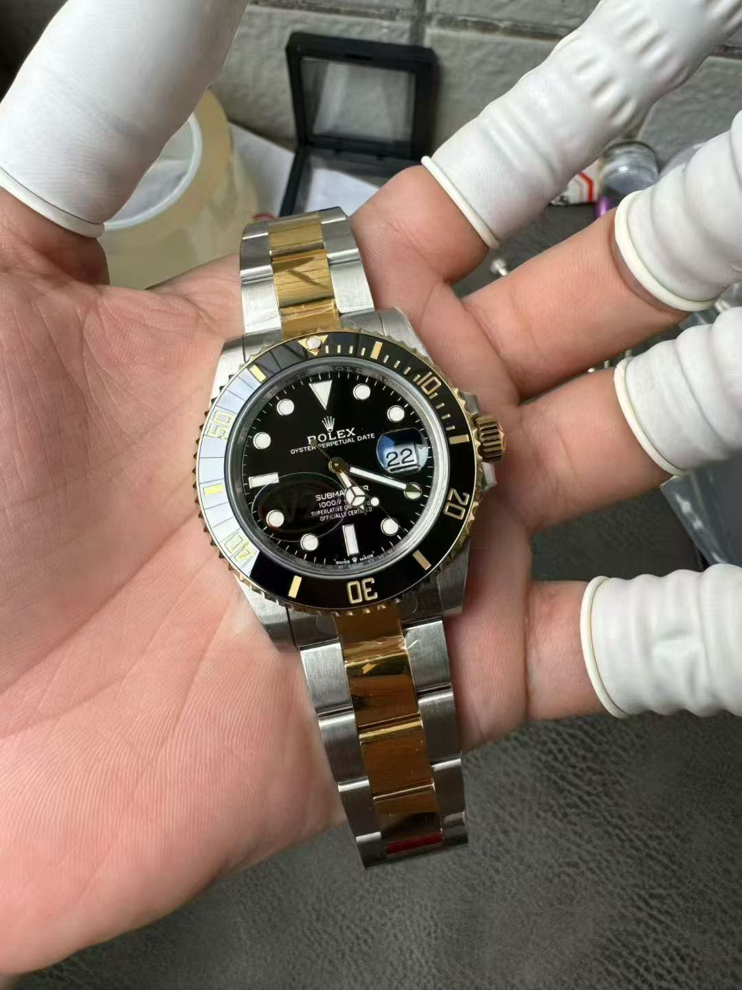 N厂v10包金版水鬼!品质!非壕勿扰!机芯保修五年!V10版!劳力士经典SUB系列,蓝水鬼间金款,市场好版本 !材质真正18K包金,搭载原装进口2836机械机芯 ,更高要求可选装瑞士进口机械ETA机芯,细节讲究,怒推!