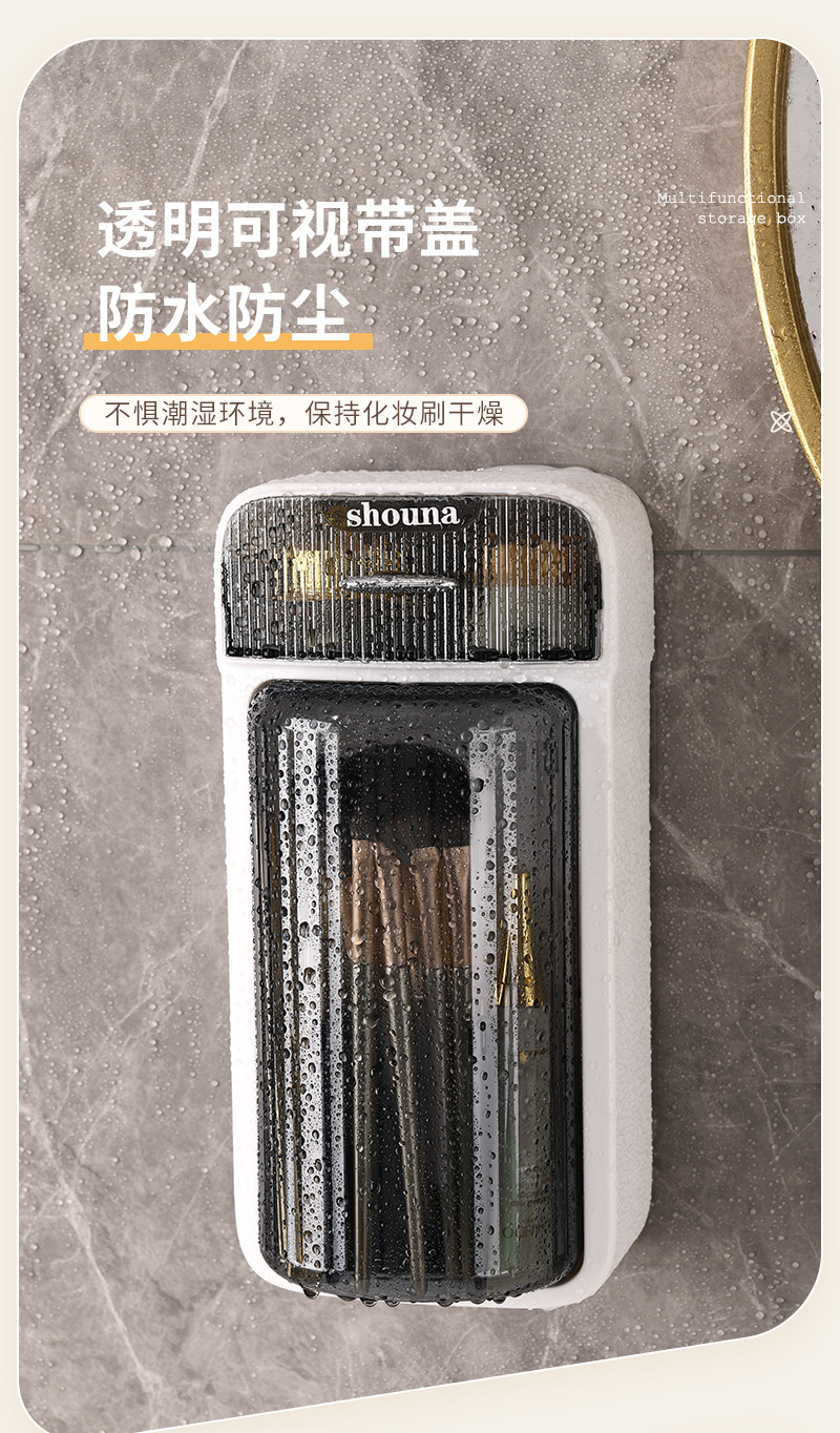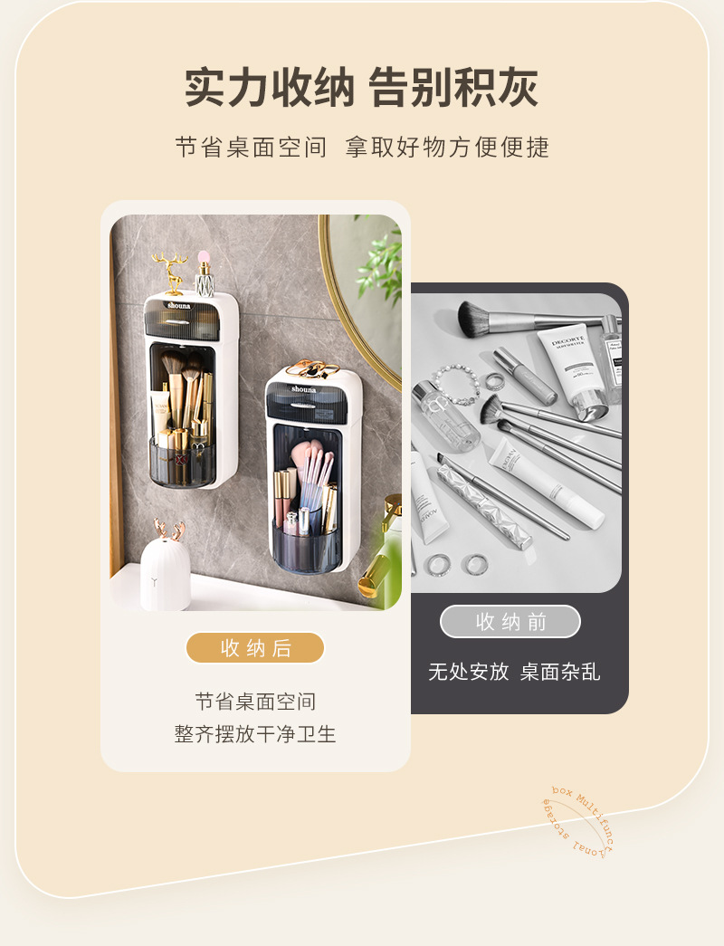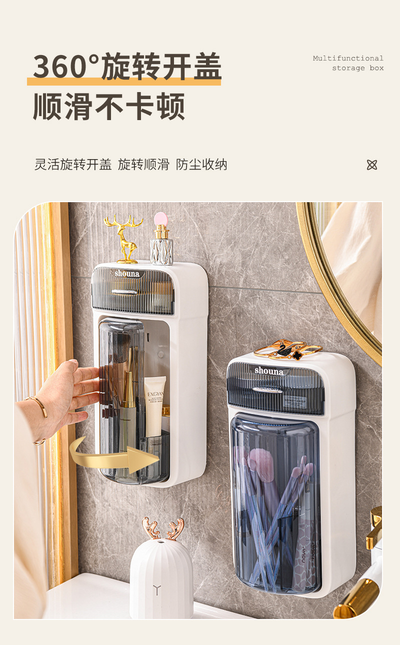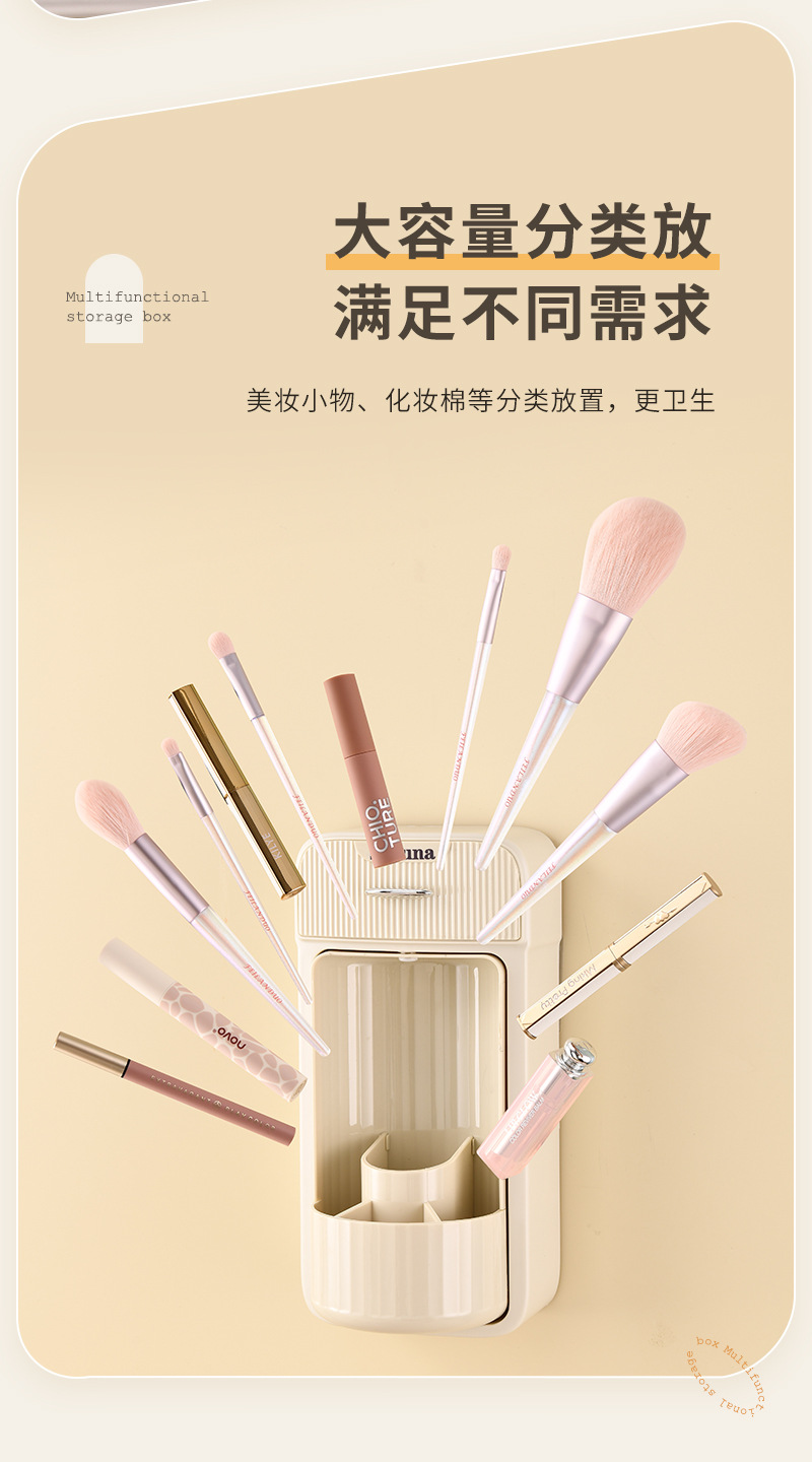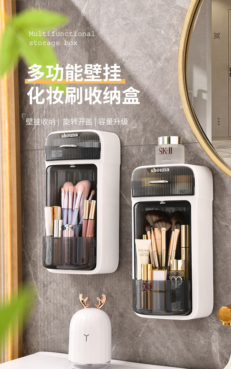 旋转化妆刷收纳筒梳妆台壁挂化妆品收纳盒口红眉笔防尘分格置物架