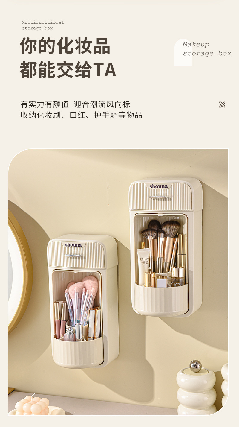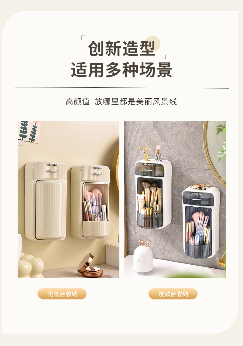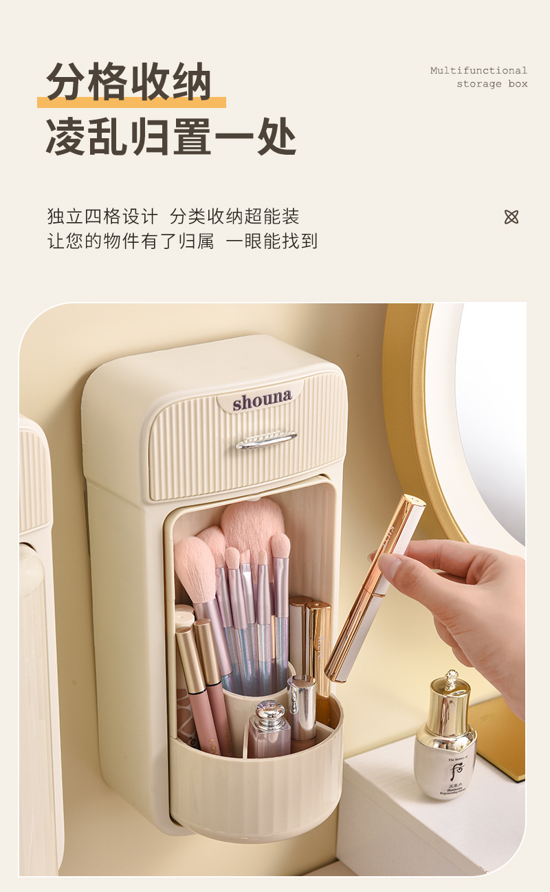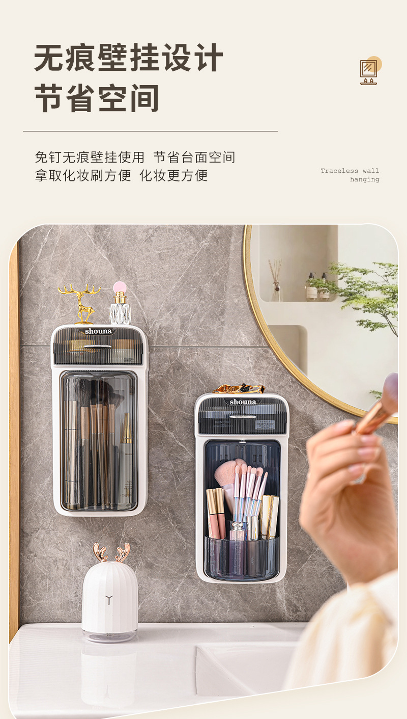 旋转化妆刷收纳筒梳妆台壁挂化妆品收纳盒口红眉笔防尘分格置物架