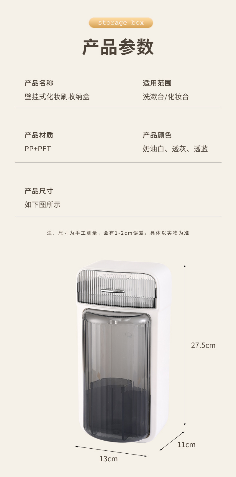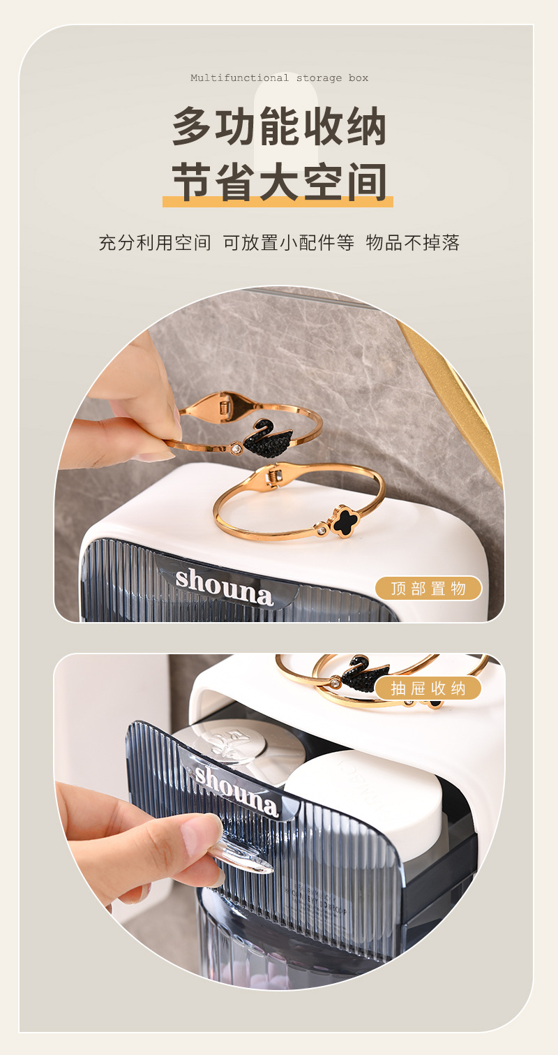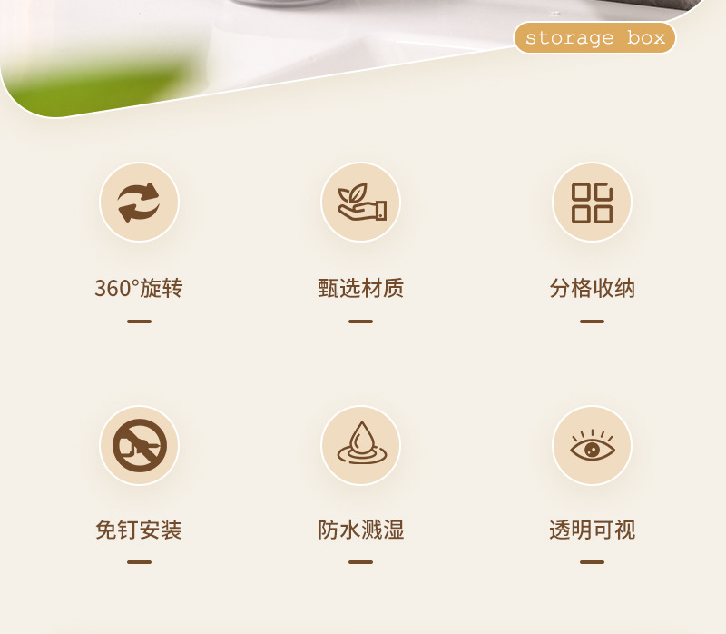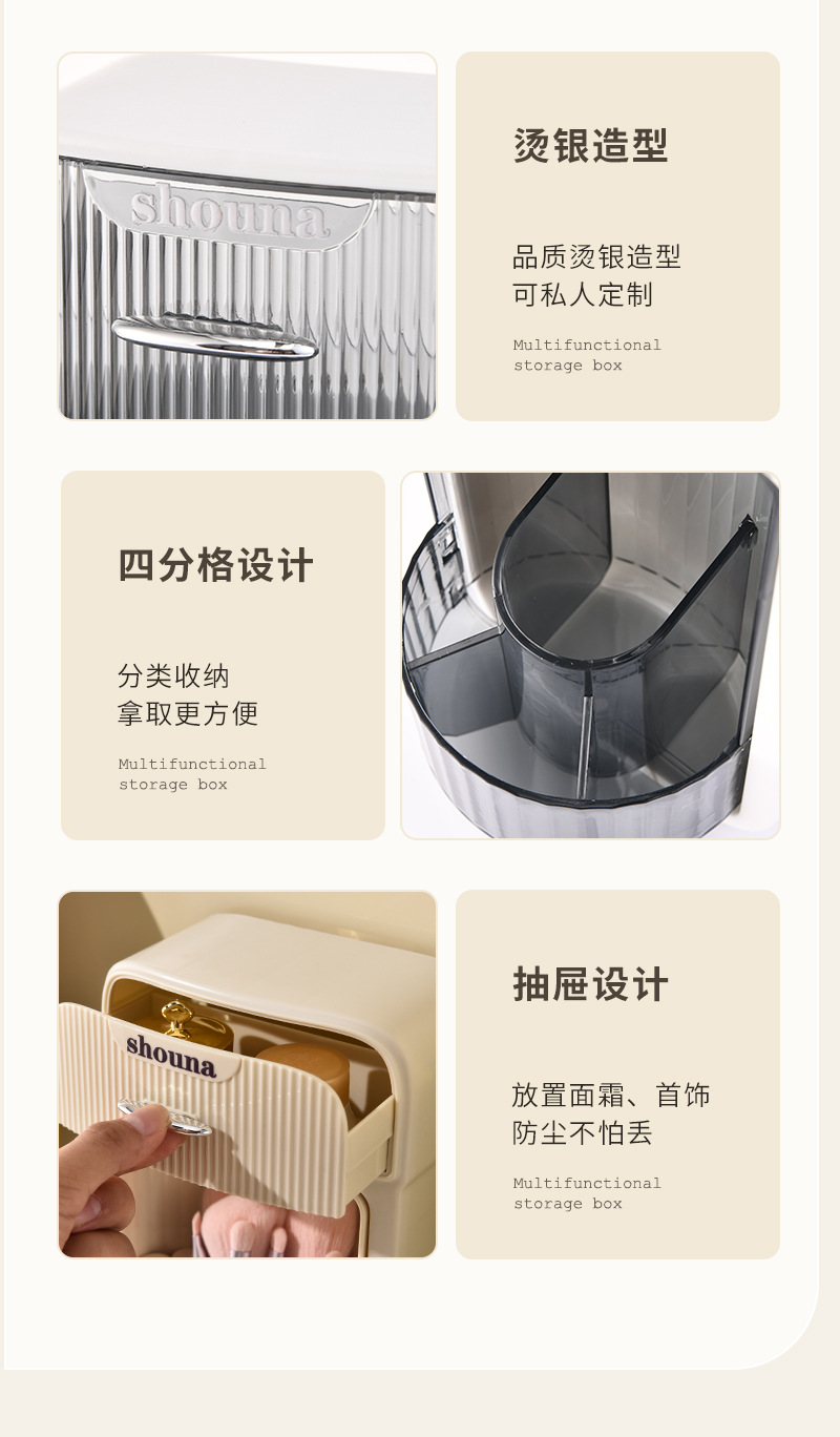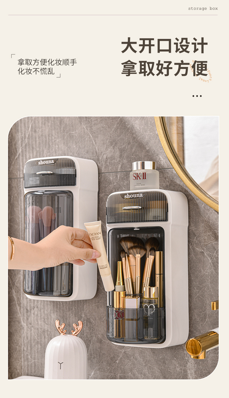 旋转化妆刷收纳筒梳妆台壁挂化妆品收纳盒口红眉笔防尘分格置物架