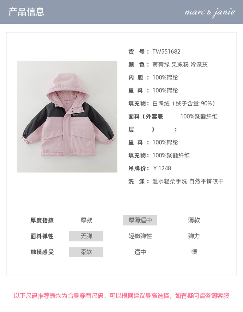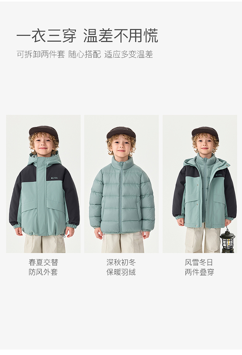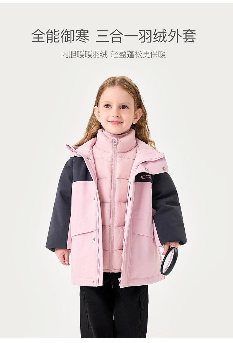 【无氟防泼水】马克珍妮男女童三合一御寒羽绒外套2025年冬装新款551682
