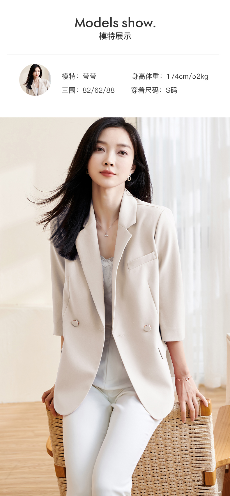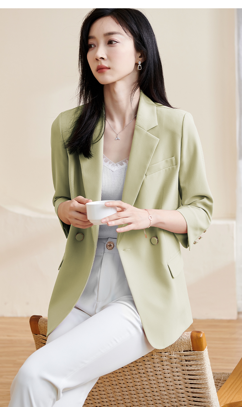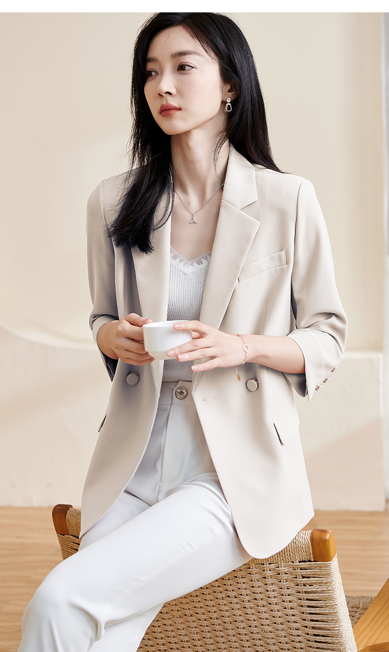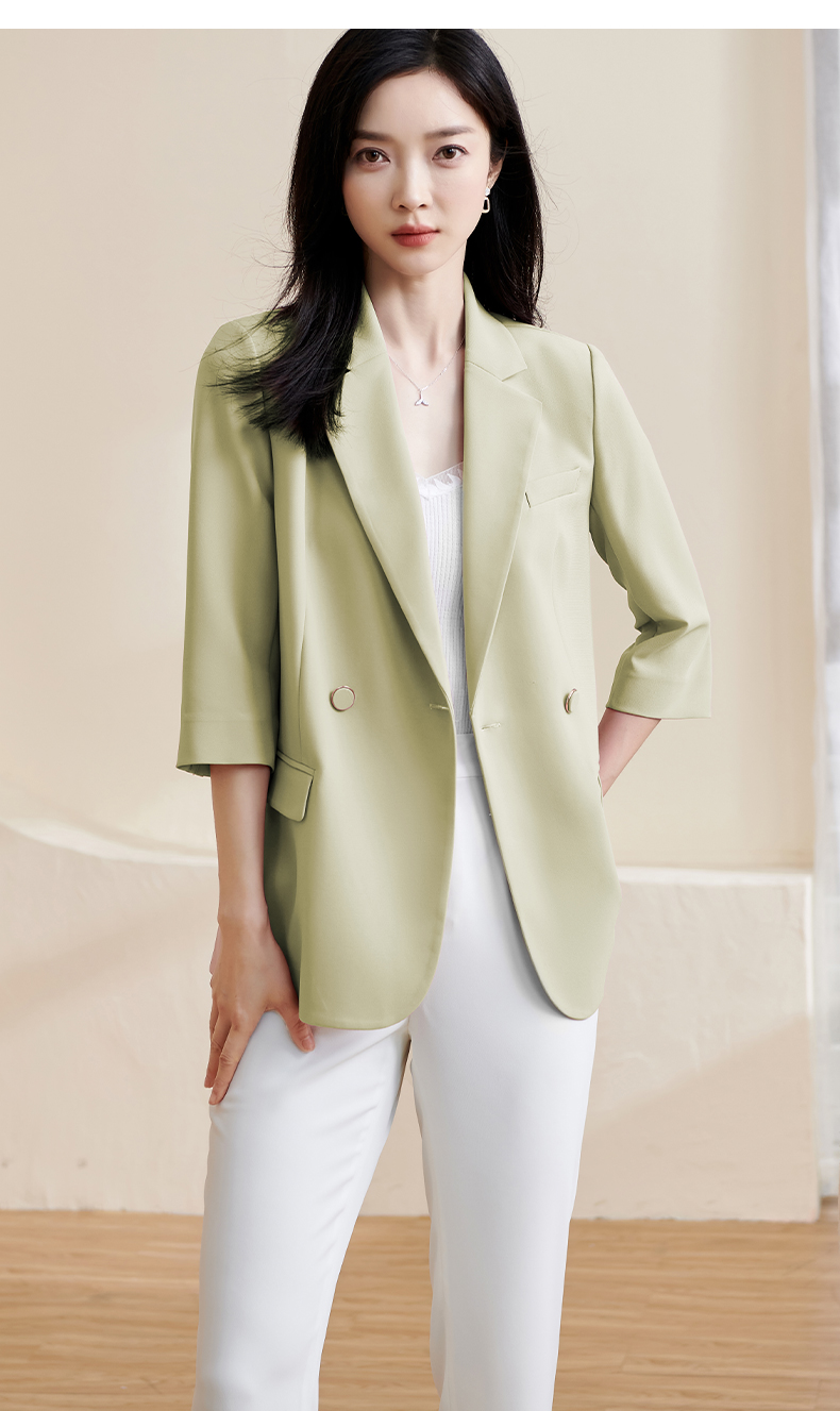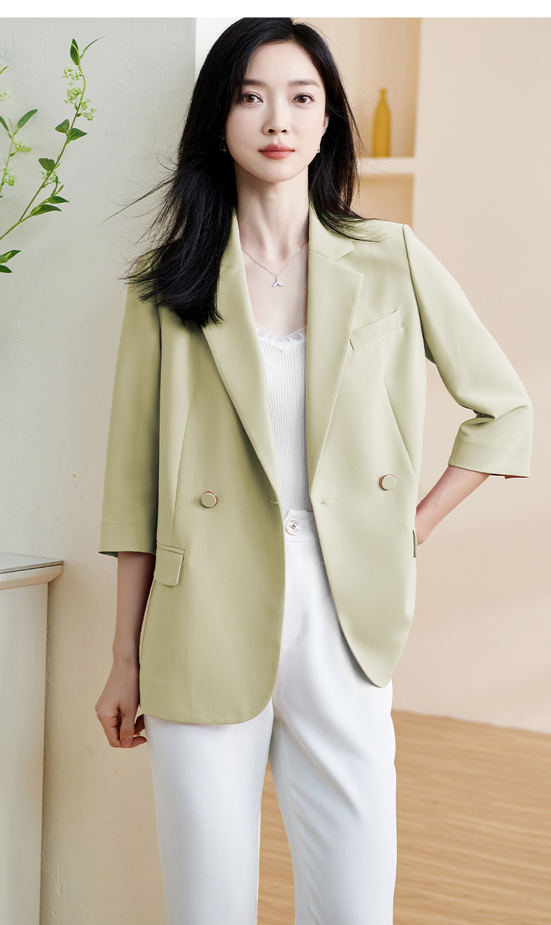 米思阳2025春夏新款职业装气质西服设计感七分袖薄款宽松外套1455