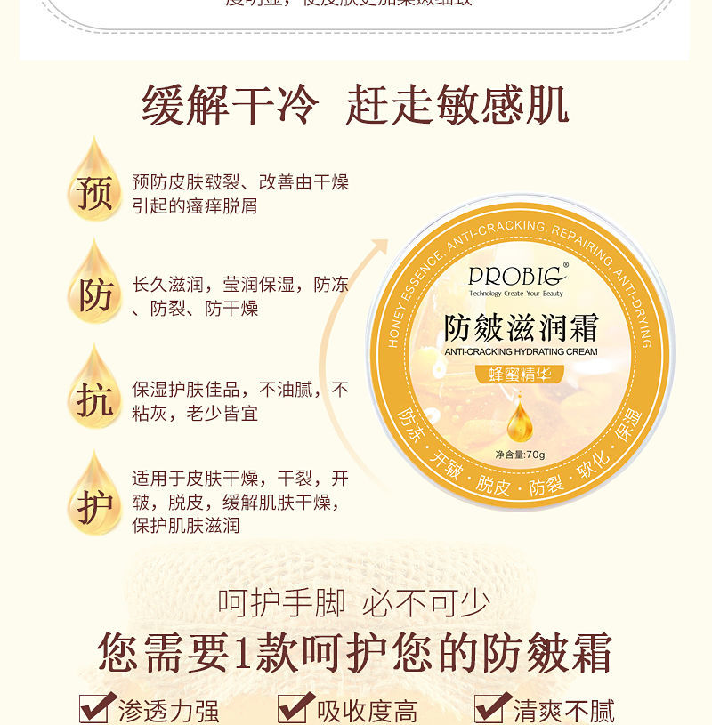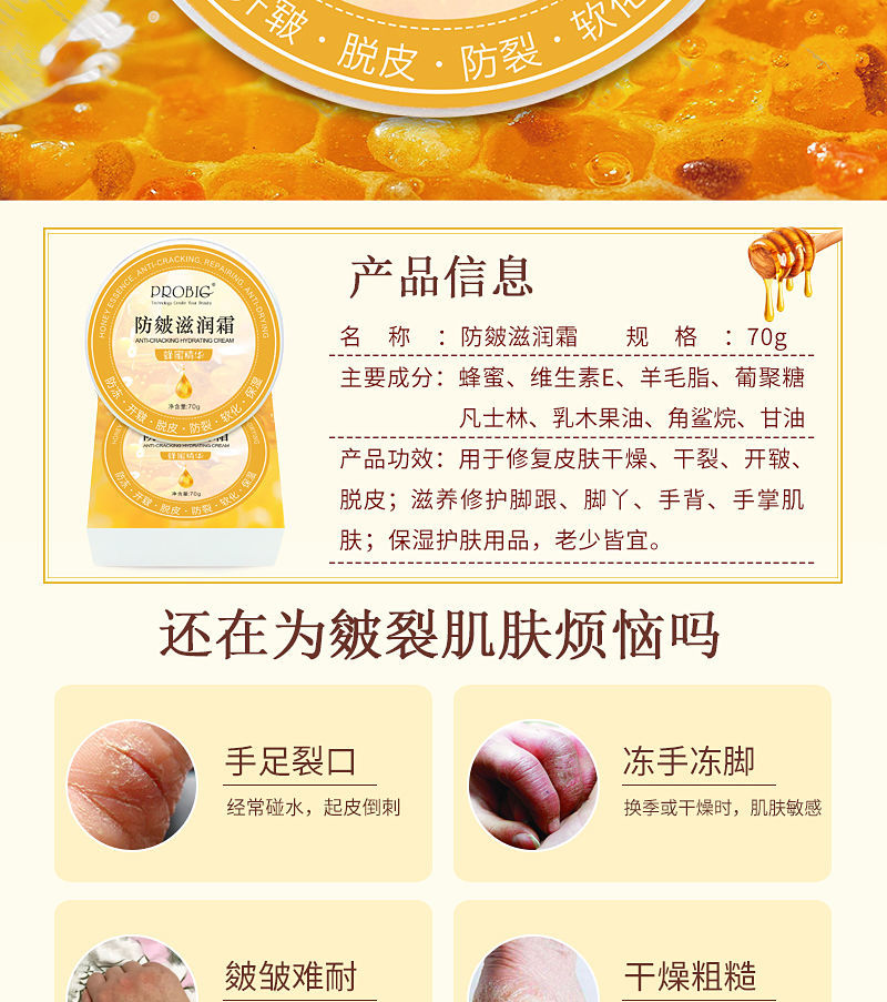 蜂蜜精华 手足干裂防皴霜 手脚开裂裂口脱皮冻手护手霜保湿滋润