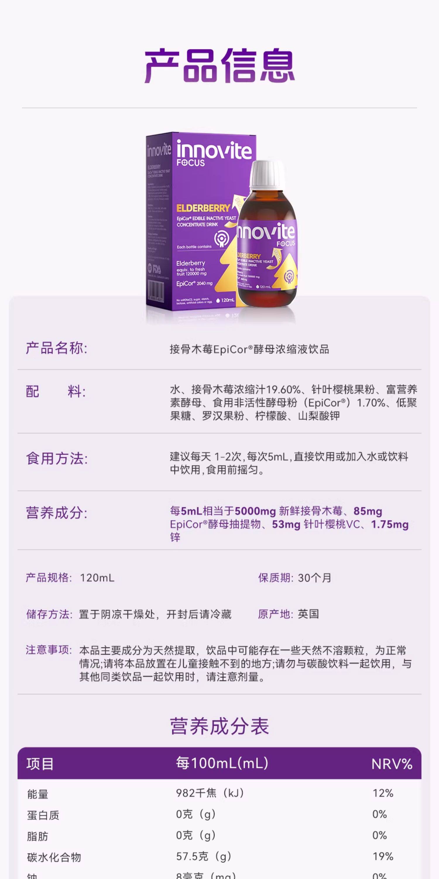 英珞维接骨木莓Epicor®酵母抽提物浓缩液120ml