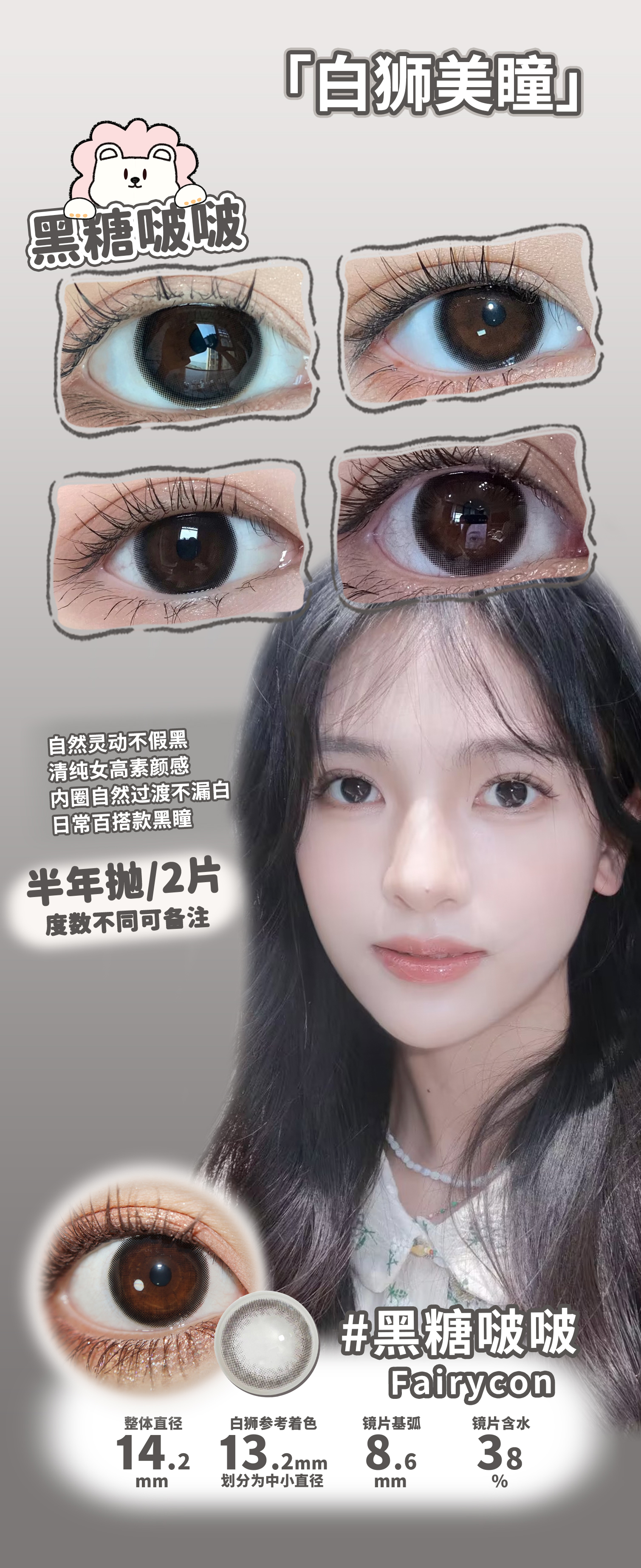 Fairycon半年抛 · 焦糖泡芙&肉桂茶褐&黑糖啵啵 半年抛 | 2片