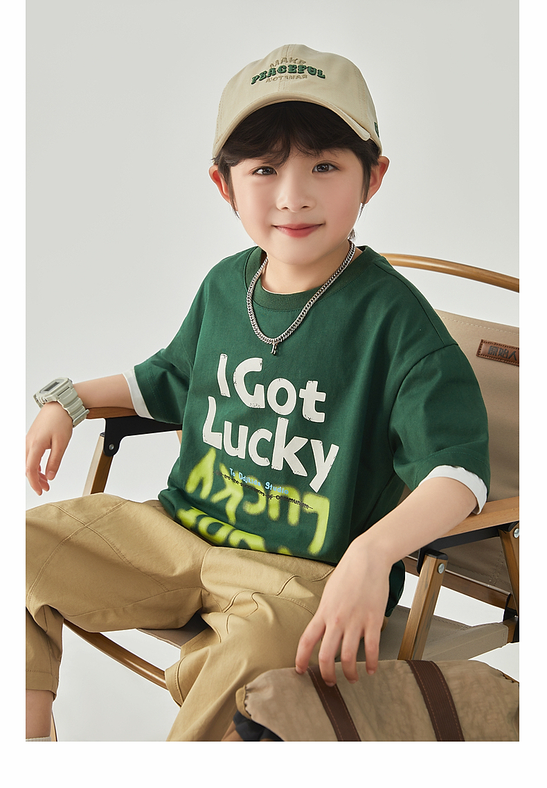 【团购价29.9】多多家男童短袖T恤夏季纯棉儿童上衣2024新款圆领印花中大童夏装9357