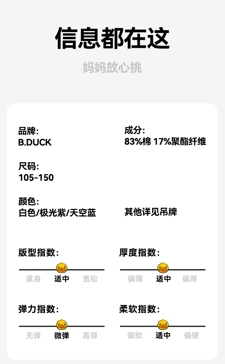 B.Duck小黄鸭童装春秋针织裤105-150 BF3663030