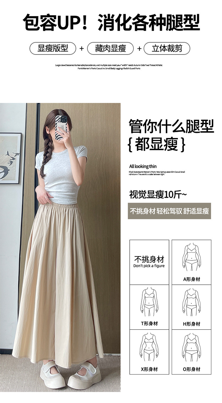 「数色可选!2025新款」杏色山本裙裤女夏高腰显瘦a字长裙休闲小个子慵懒阔腿裤下装