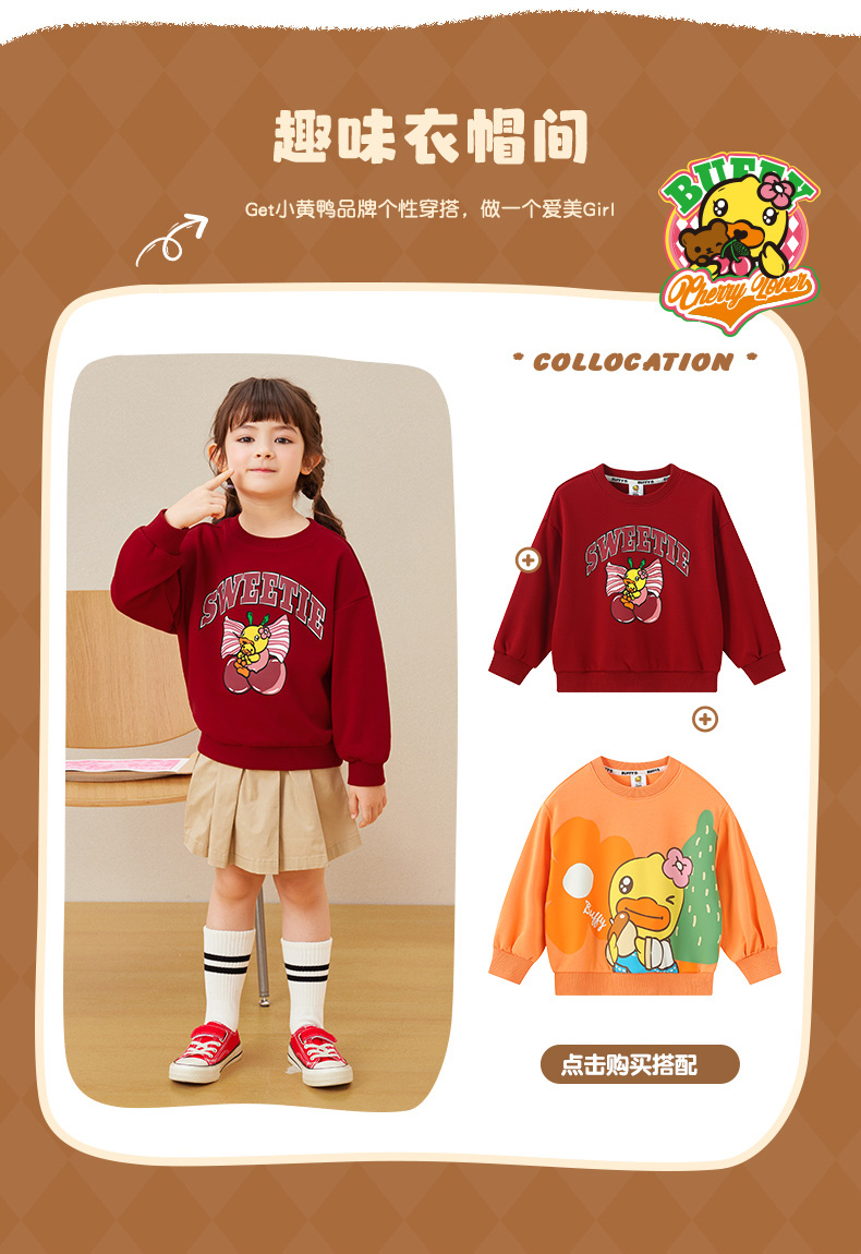 B.DUCK小黄鸭童装春秋圆领卫衣105-150 FF3408010