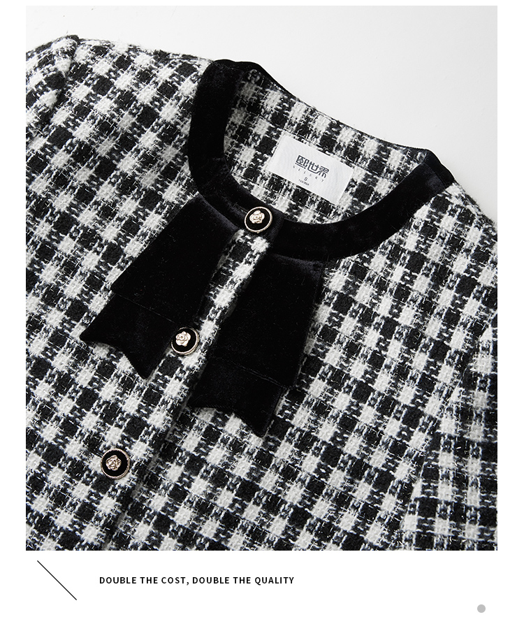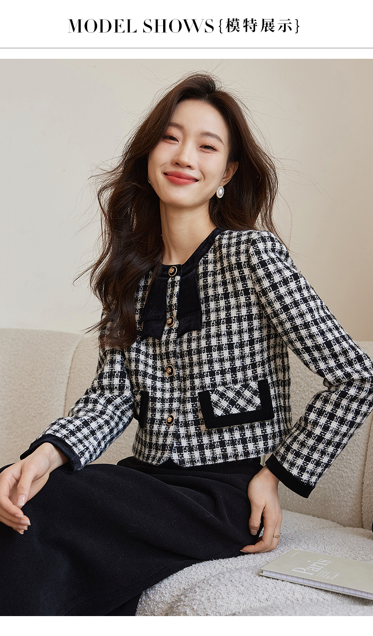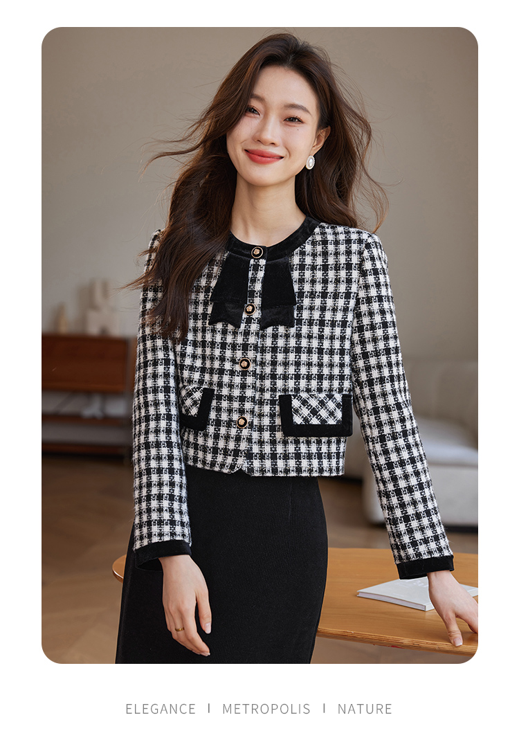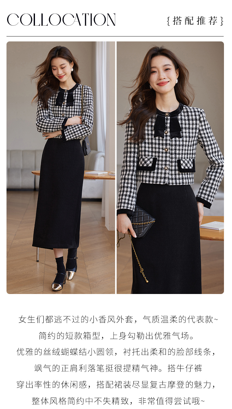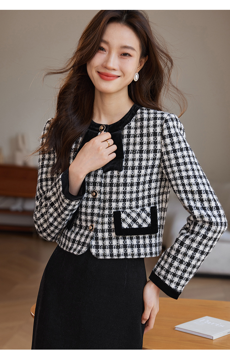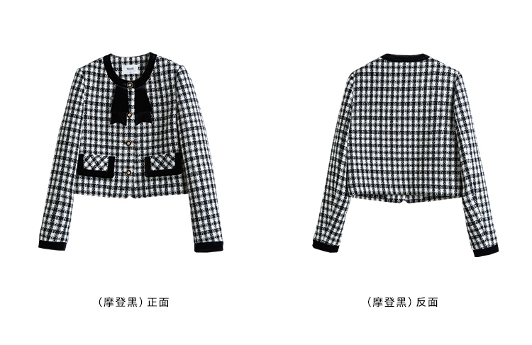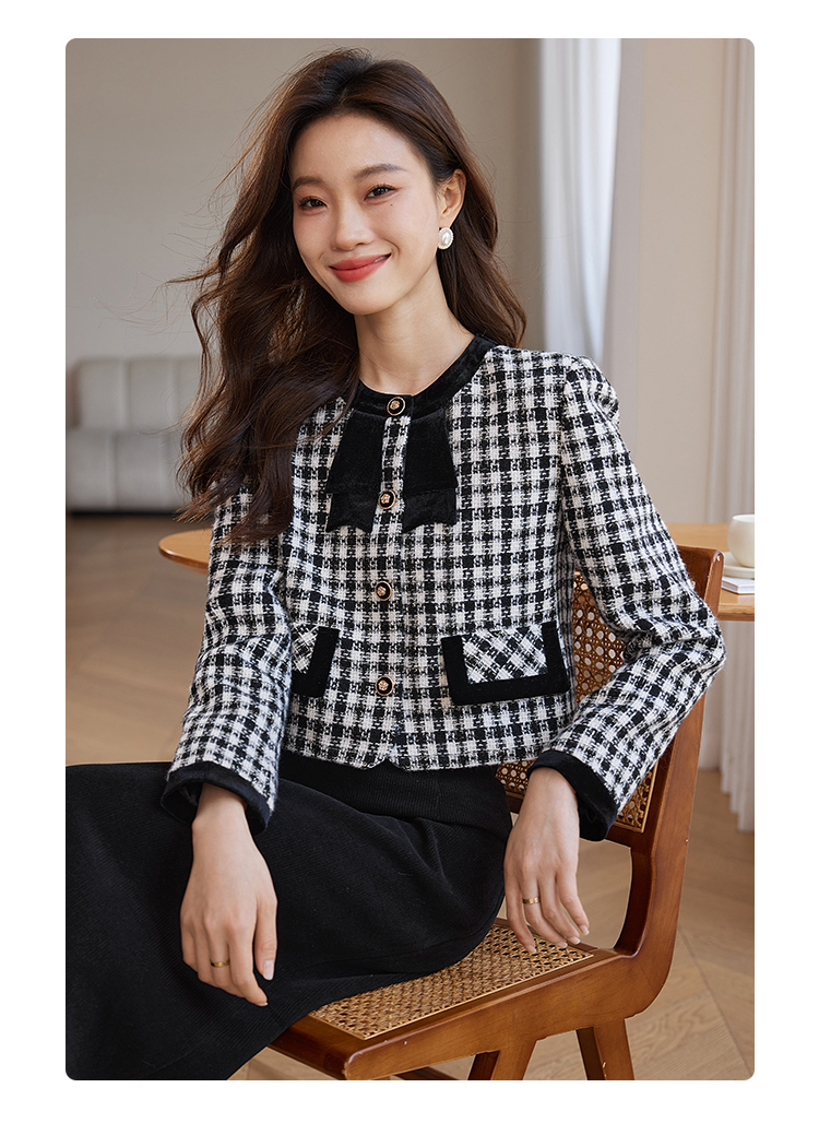 【年货节】熙世界法式优雅小香风外套女2025冬季新款格纹粗花呢蝴蝶结加厚短外套
