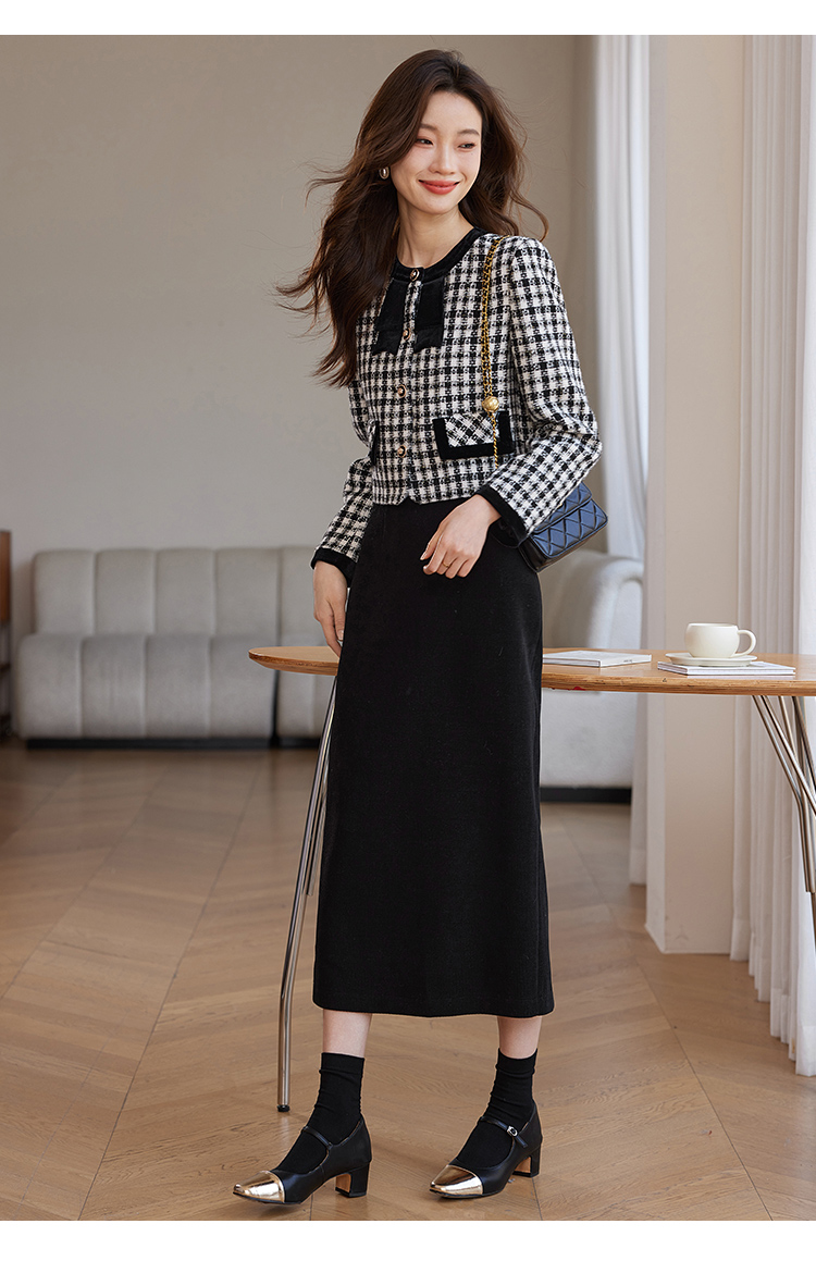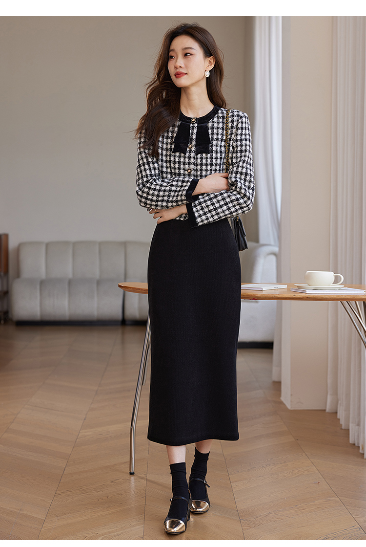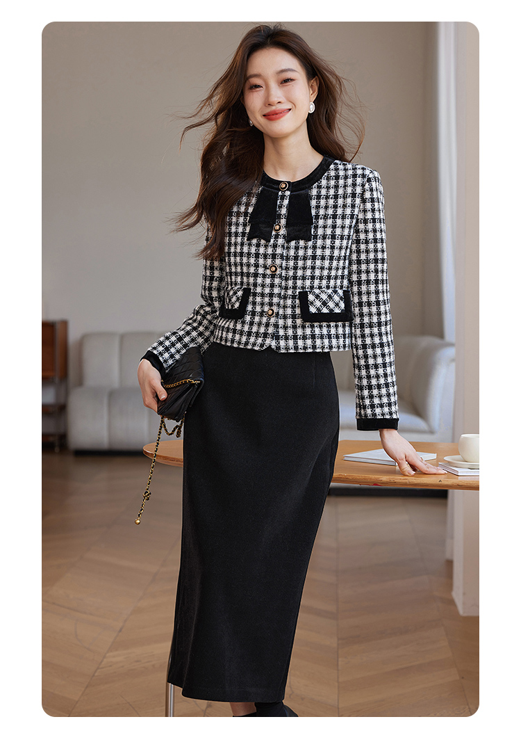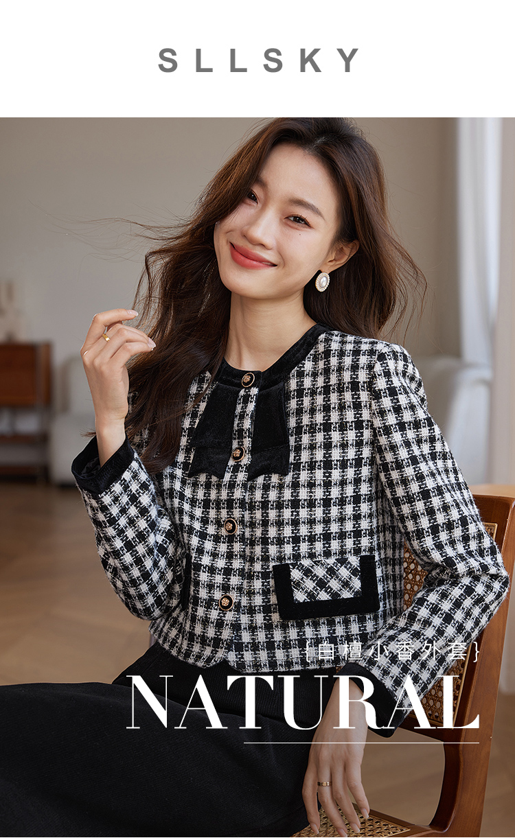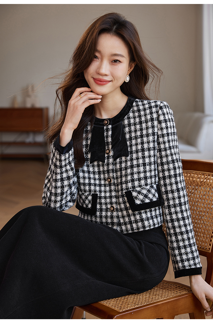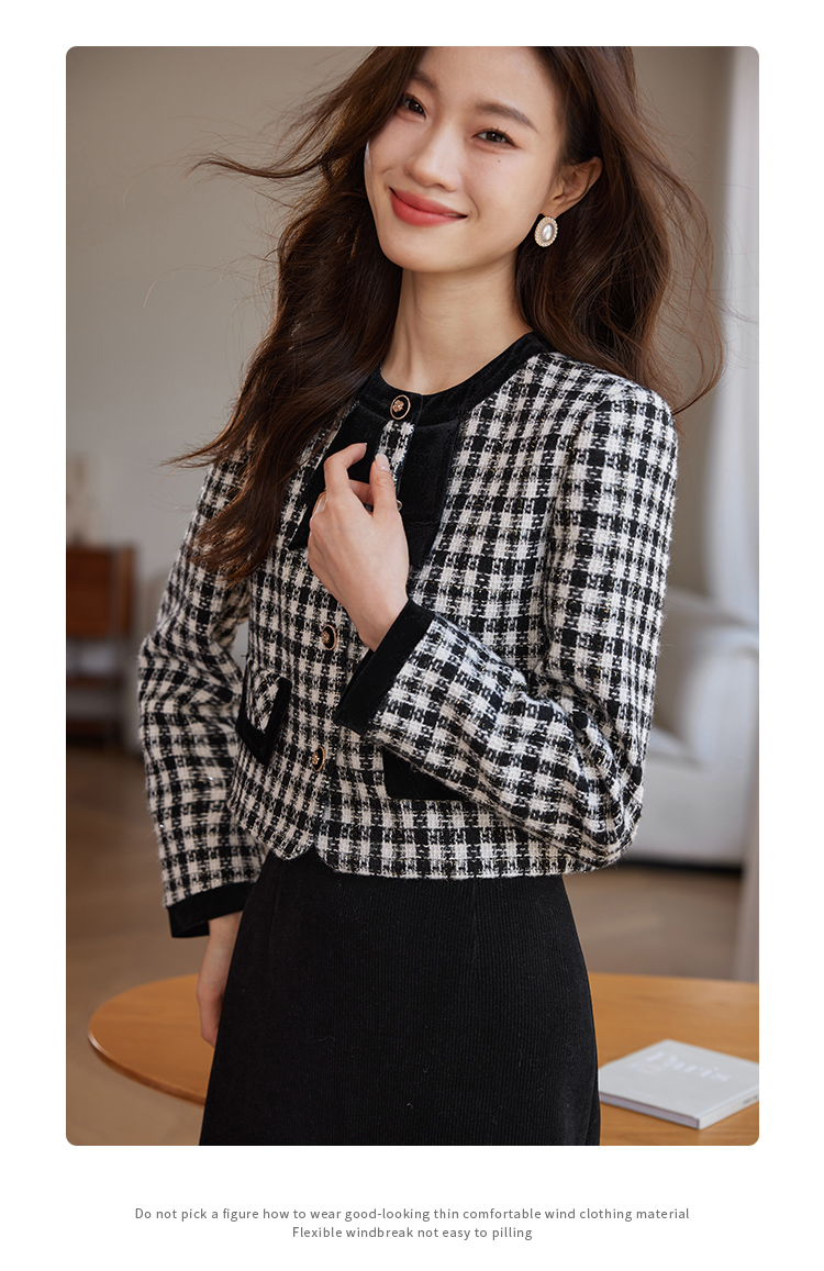 【年货节】熙世界法式优雅小香风外套女2025冬季新款格纹粗花呢蝴蝶结加厚短外套
