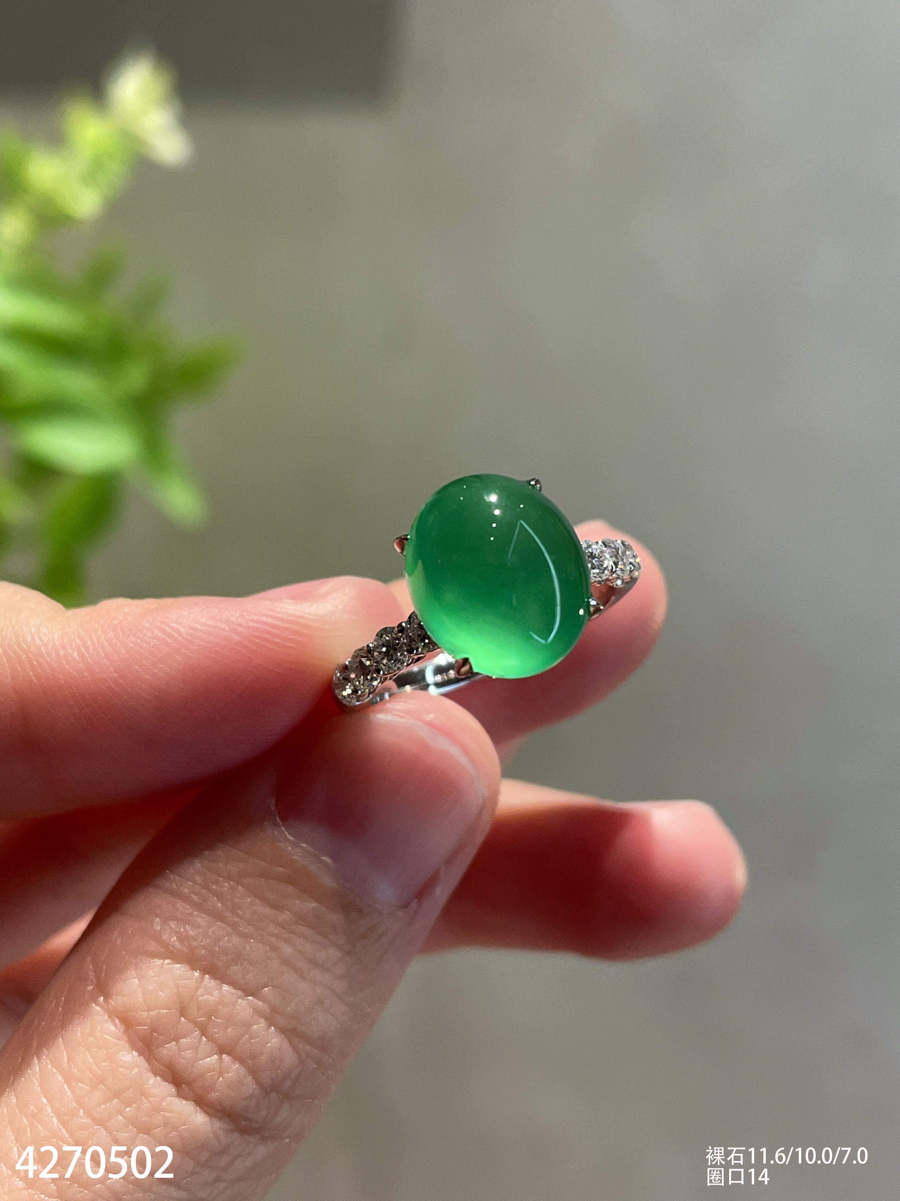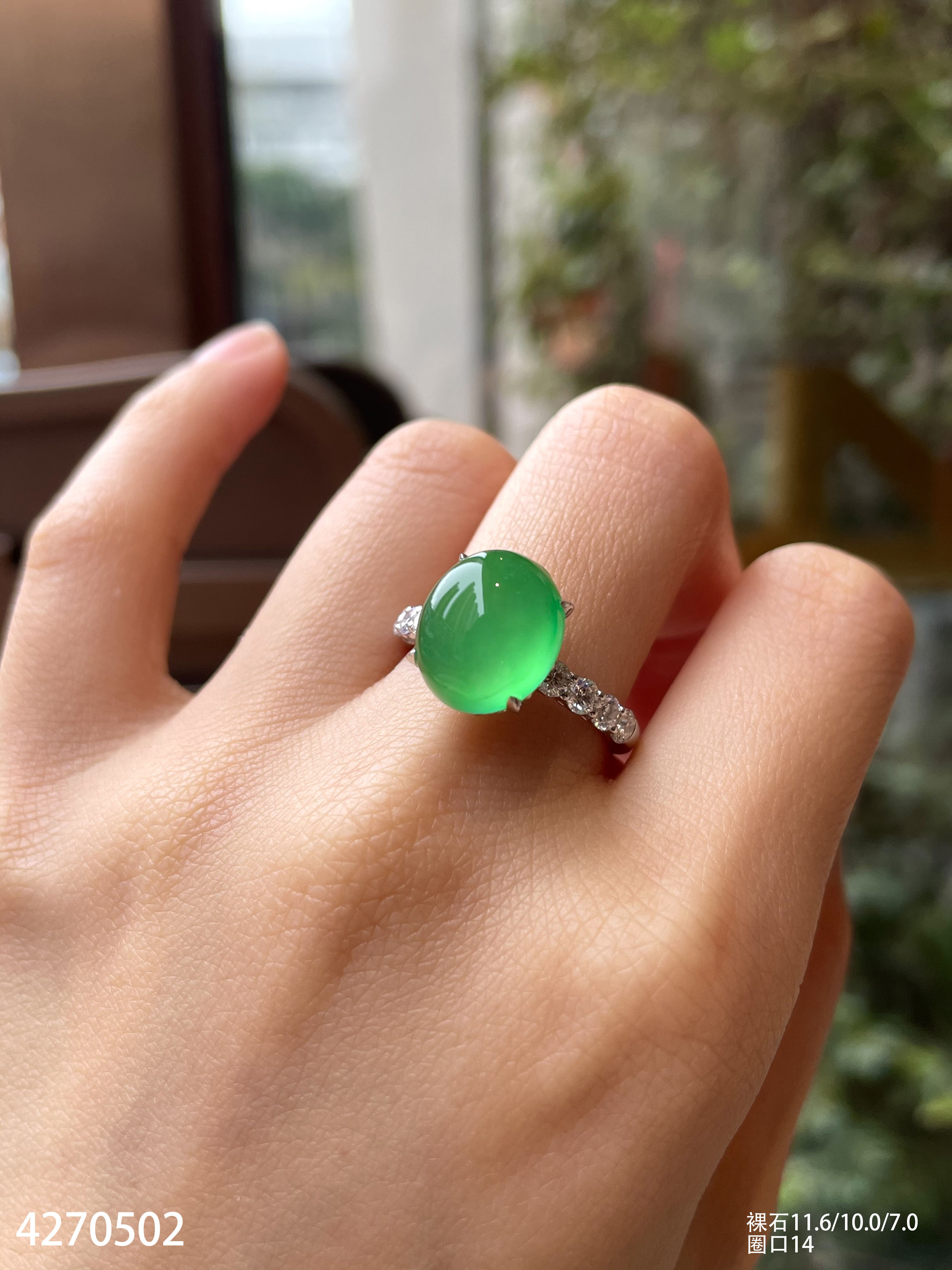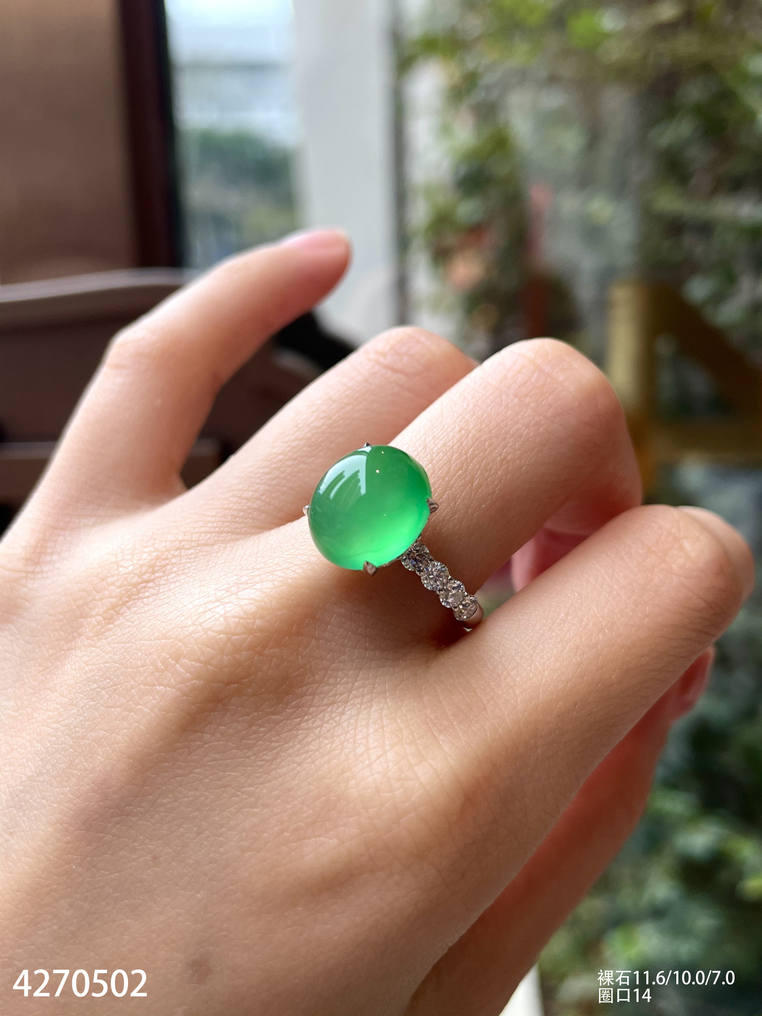 玻璃种艳绿蛋面戒指【4270502】具体价格微信咨询