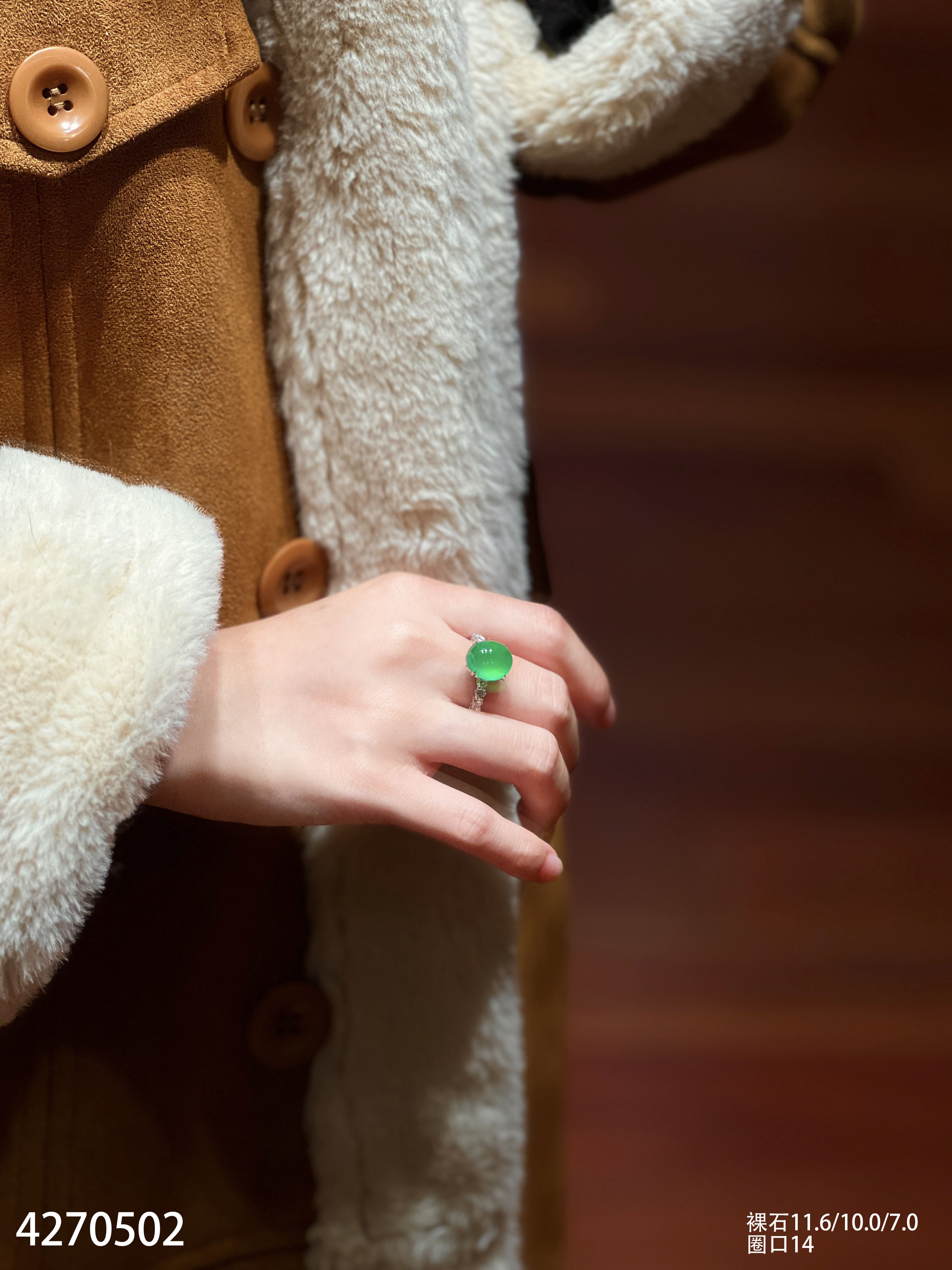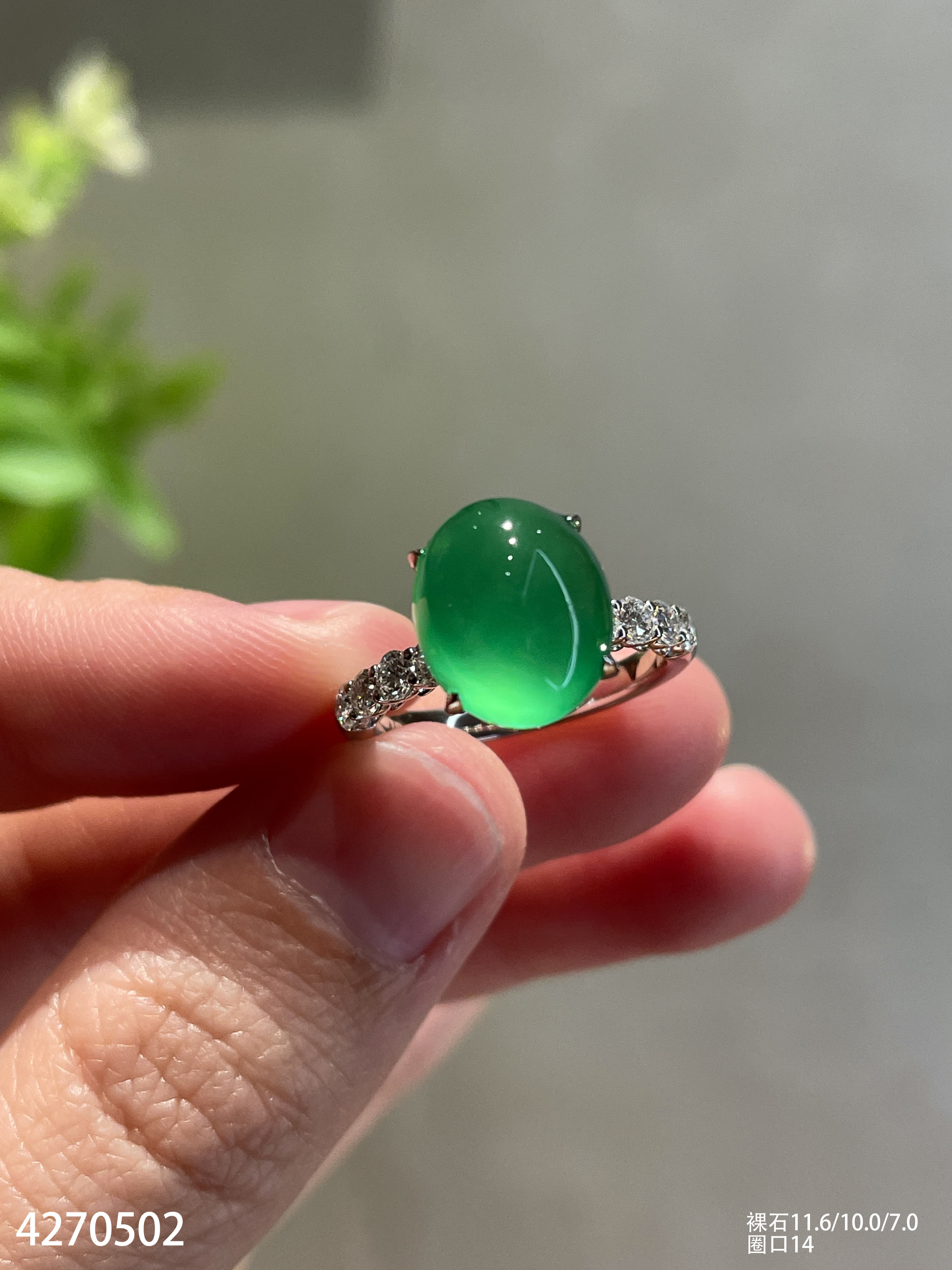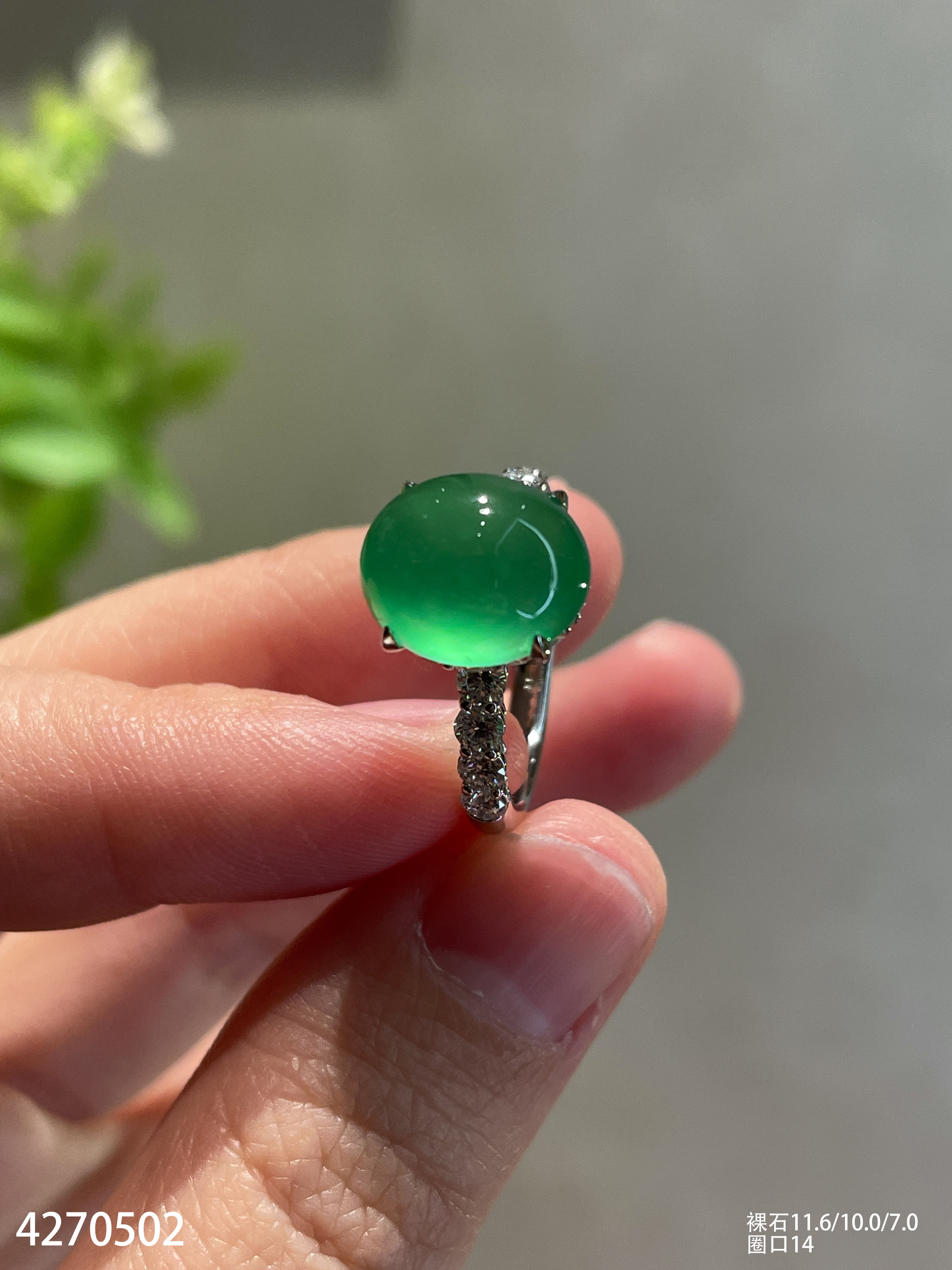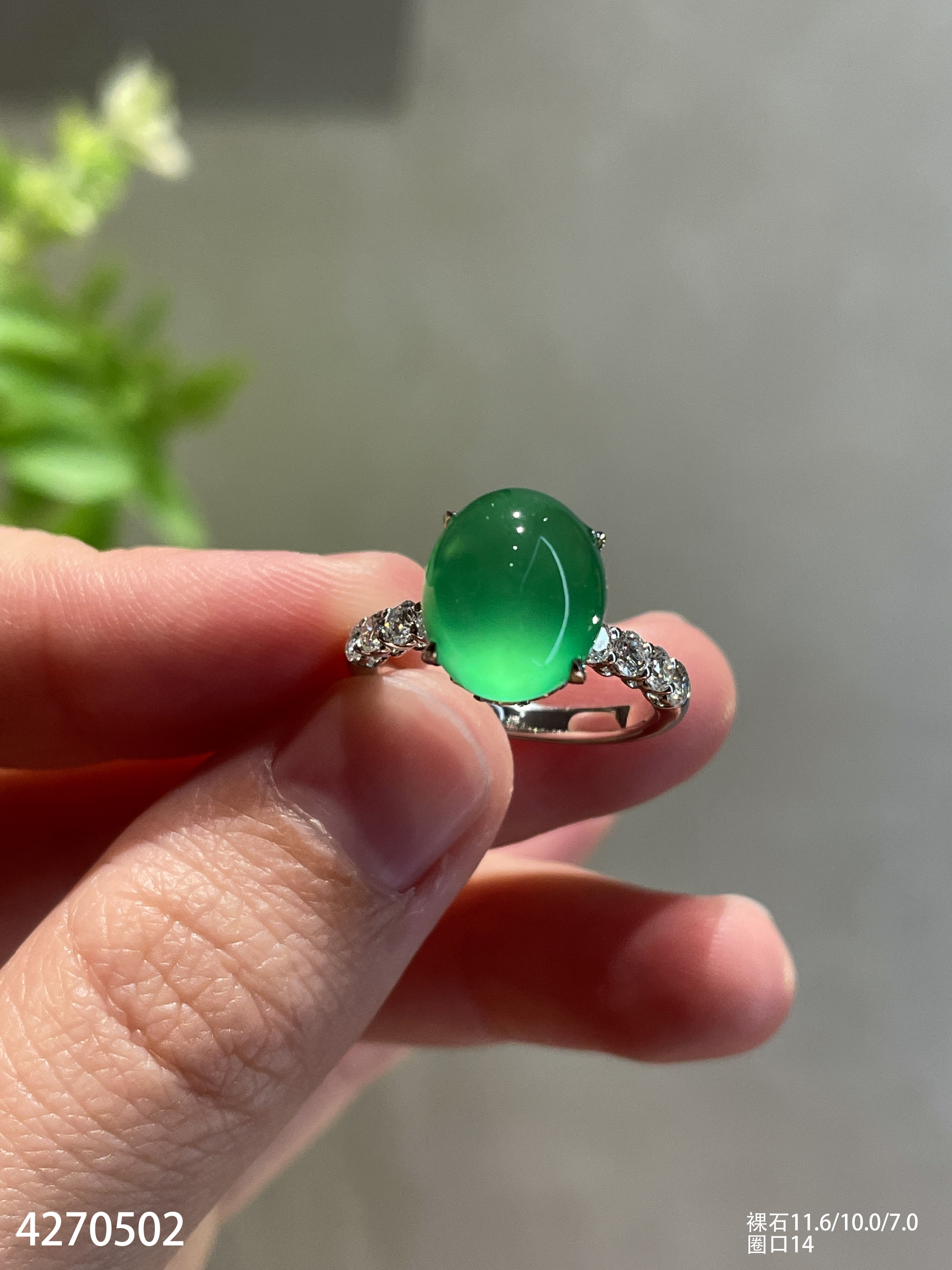 玻璃种艳绿蛋面戒指【4270502】具体价格微信咨询