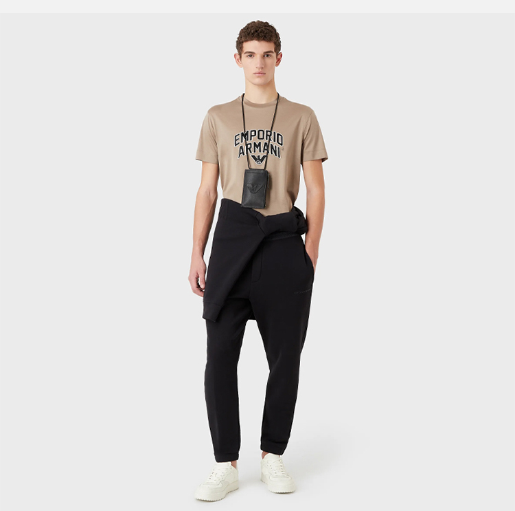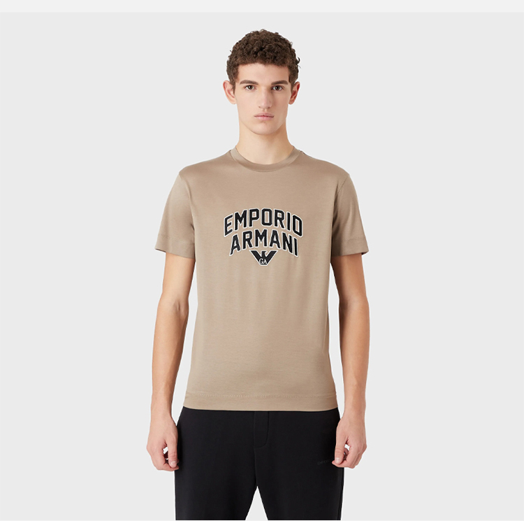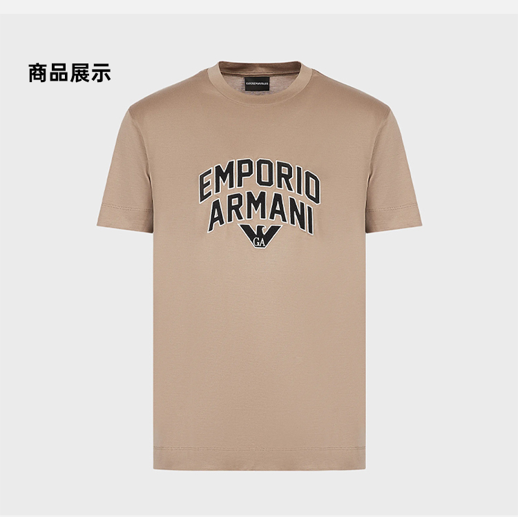 EMPORIO ARMANI 阿玛尼 男士字母徽标印花圆领短袖T恤 卡其色 3R1TBF 1JUVZ 0144