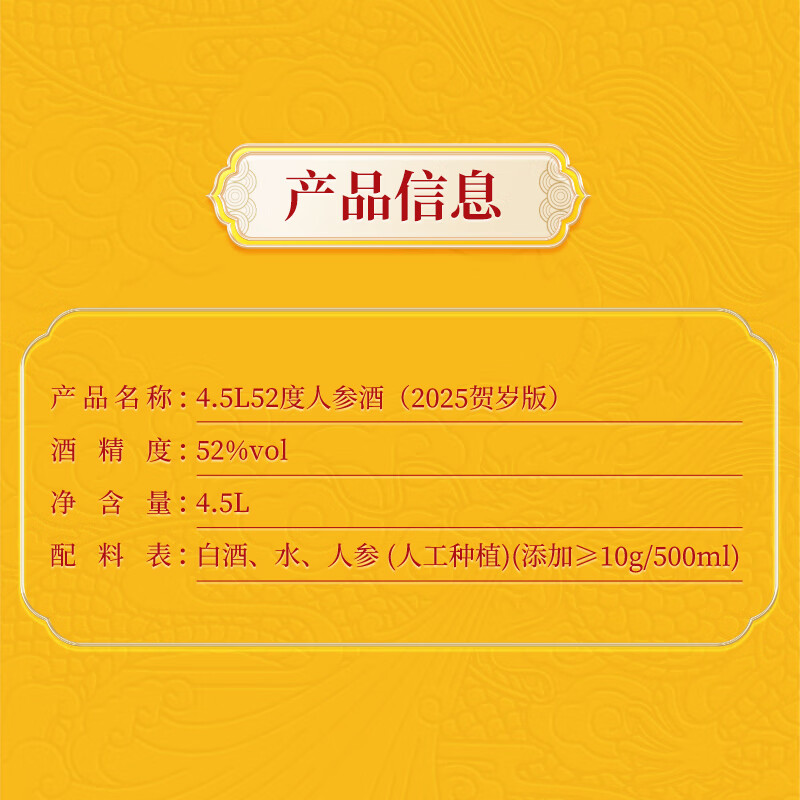 52°劲牌人参酒4.5L(2025贺岁版)
