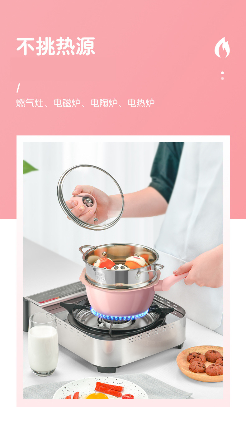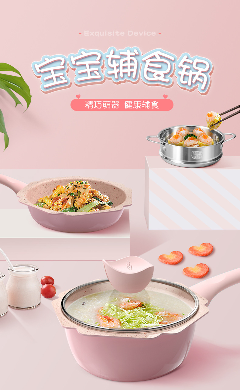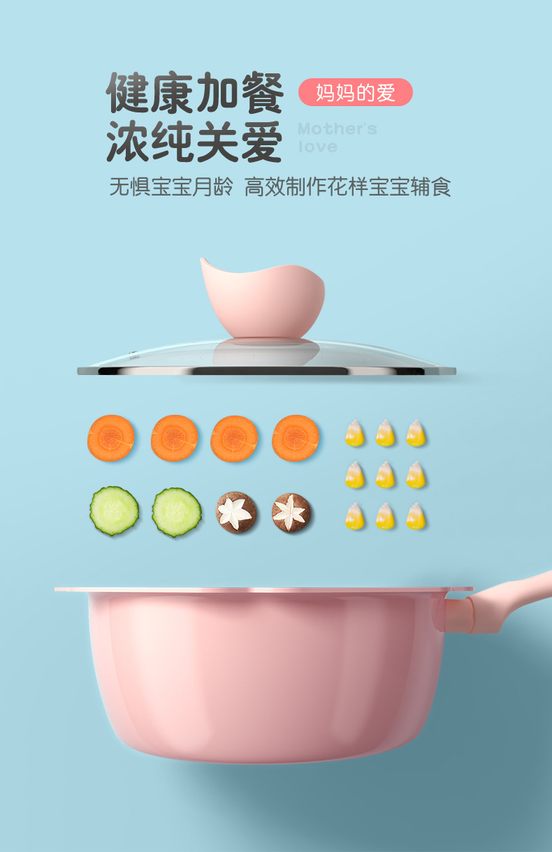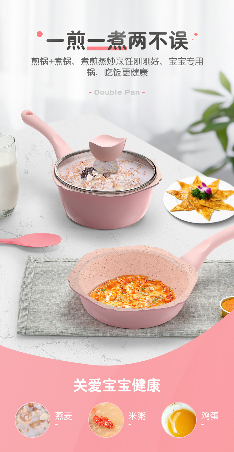 宝宝辅食锅小奶锅不粘锅婴儿专用锅煎煮一体儿童蒸煮多功能麦饭石【日用品】