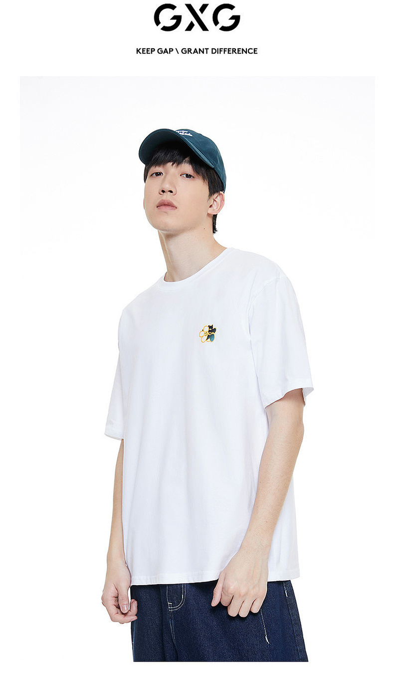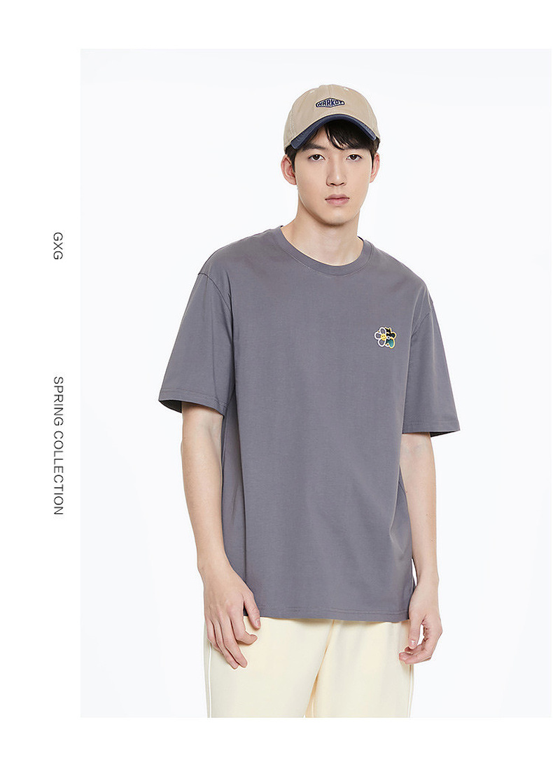 GXG男装【撞色字母】夏季时尚百搭印花男士圆领休闲纯棉短袖t恤K&C