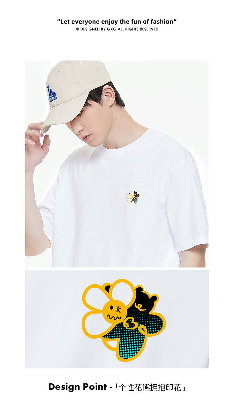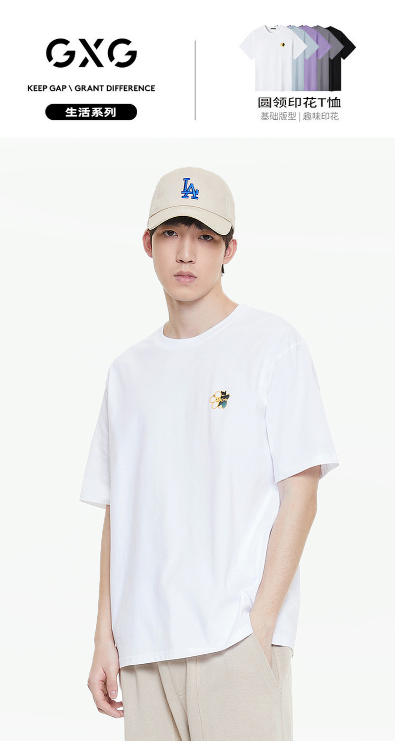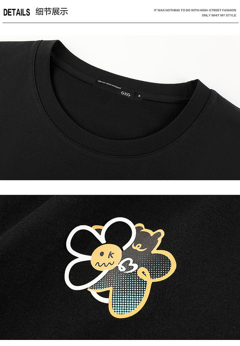 GXG男装夏季时尚简约印花t恤休闲百搭男女同款短袖K&C