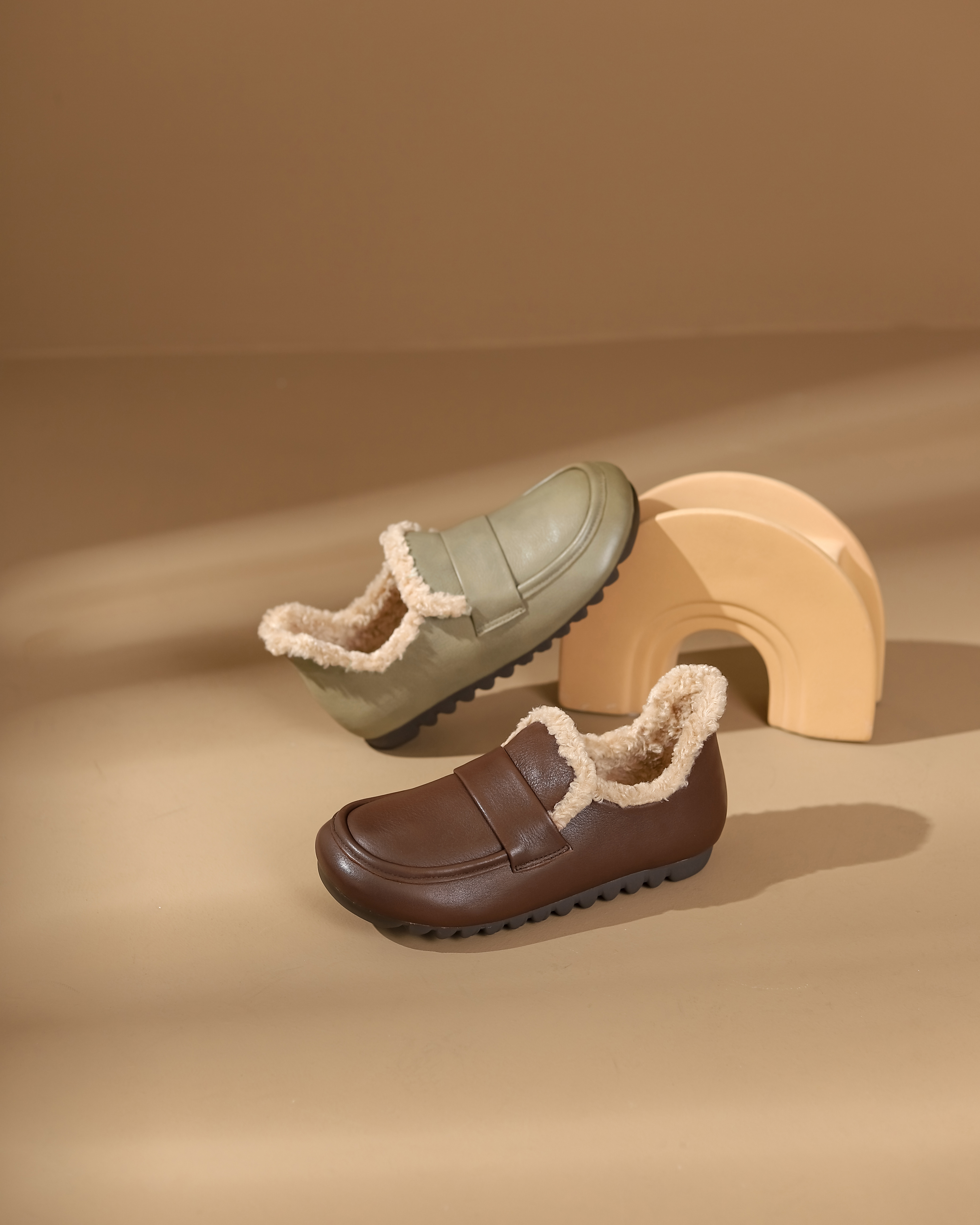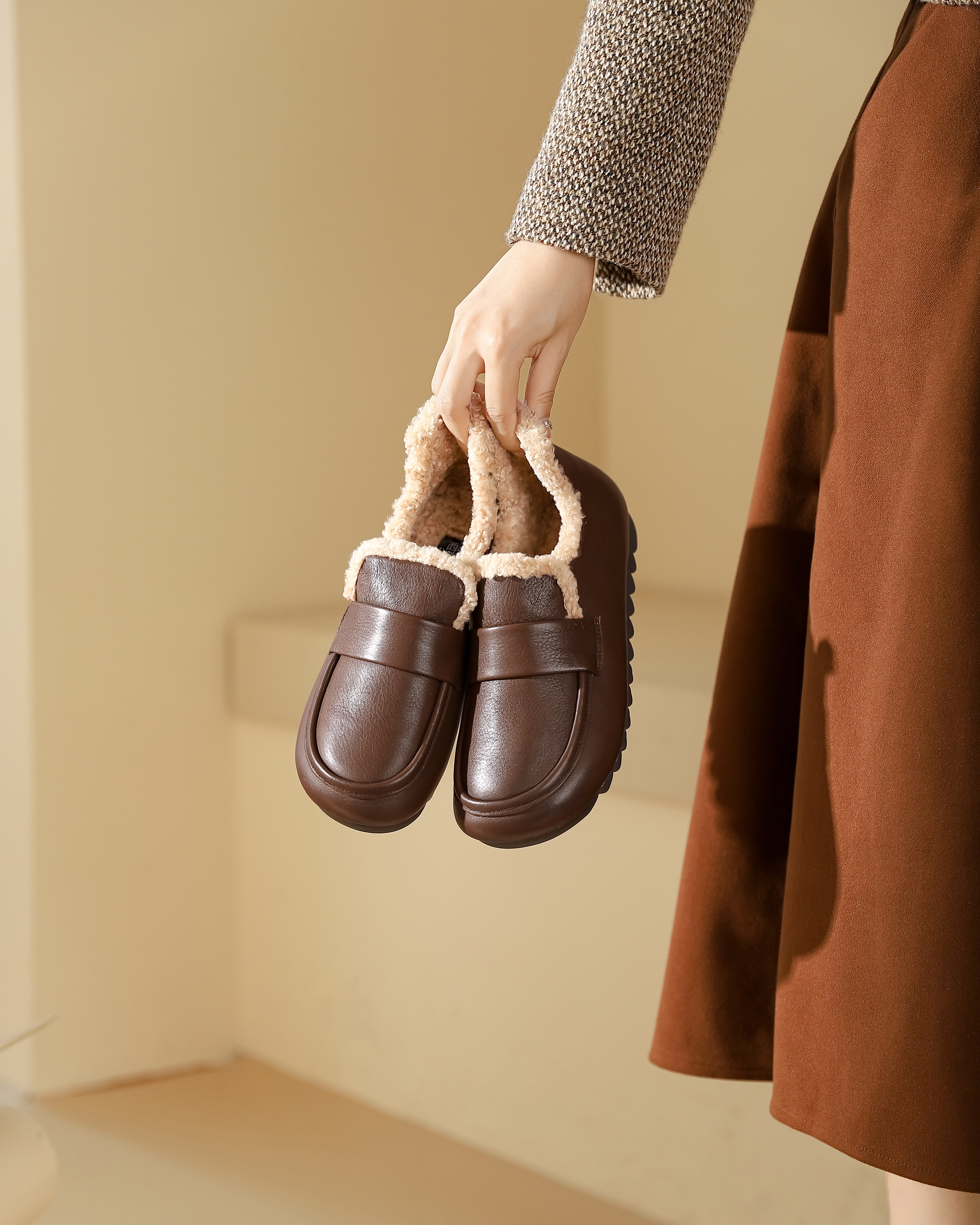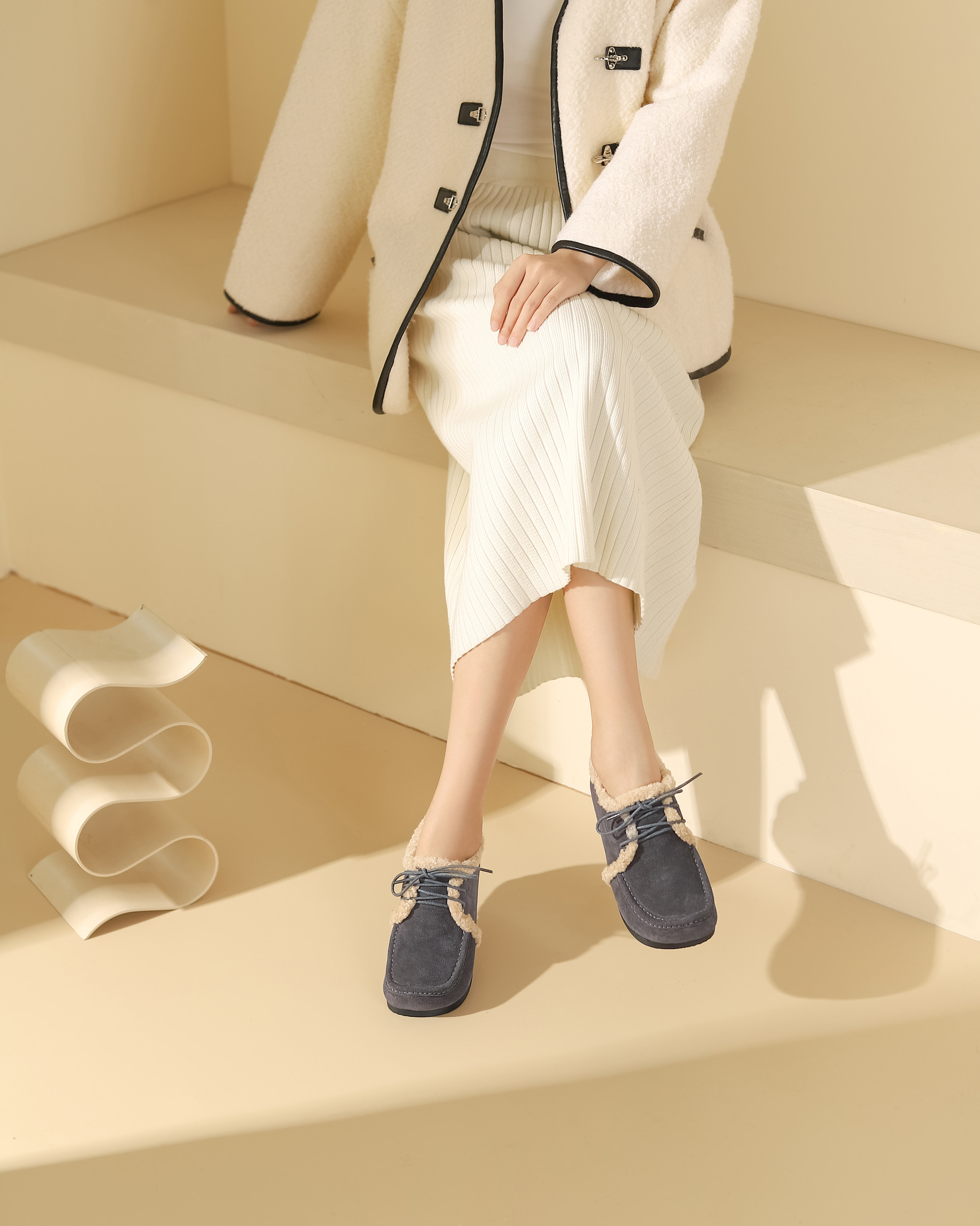 西村名物2023冬季新品复古圆头内里绒毛保暖短靴X23DM45271