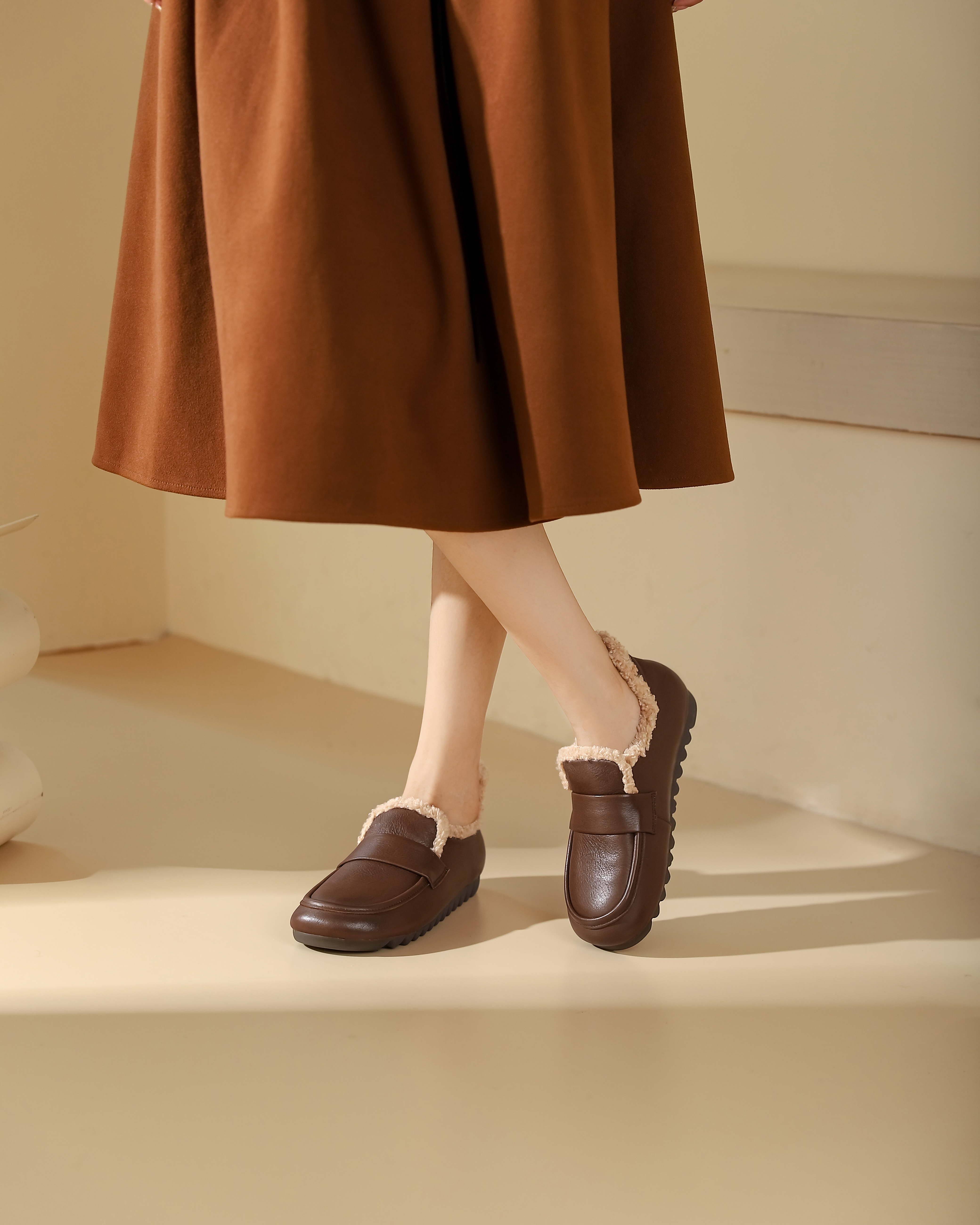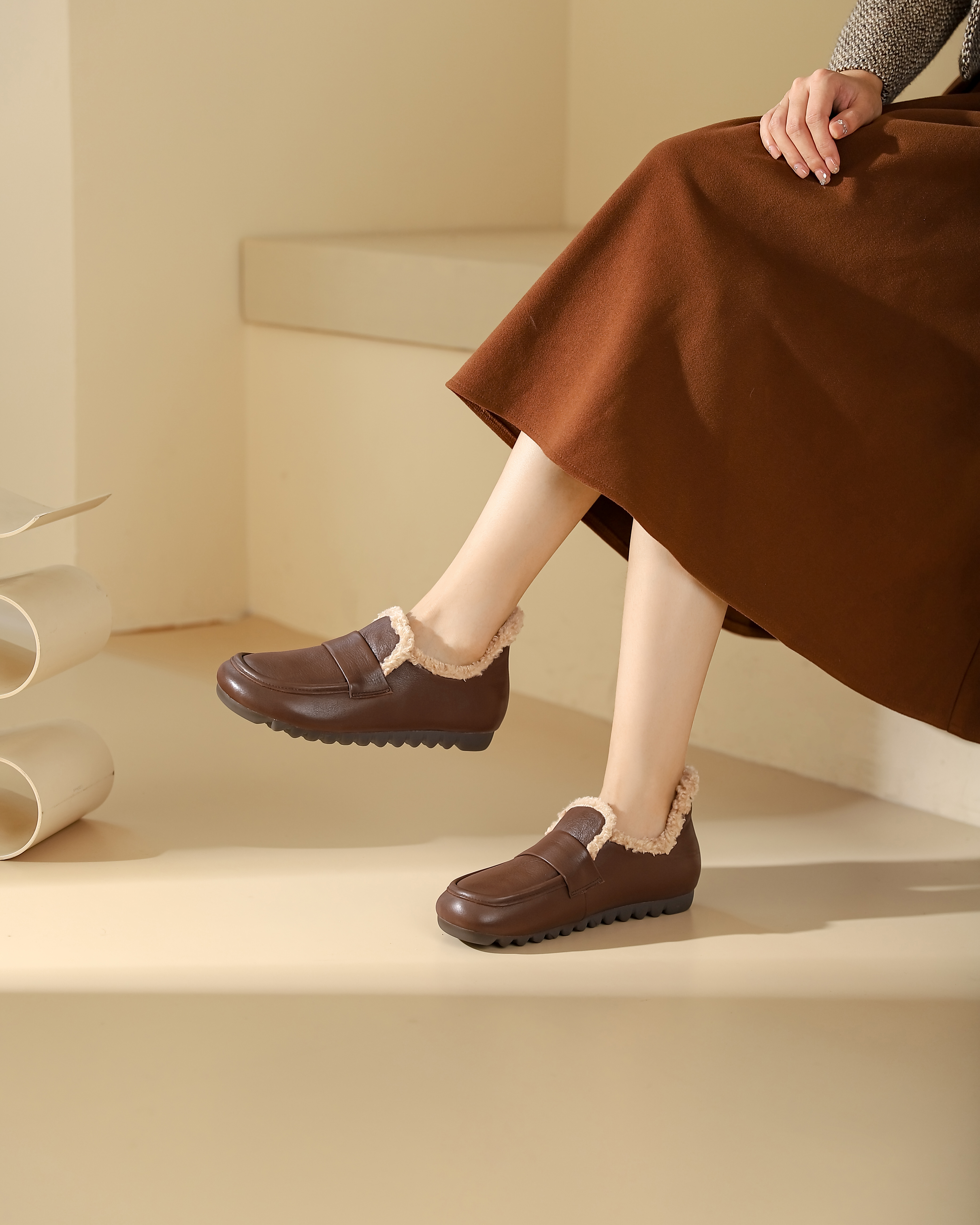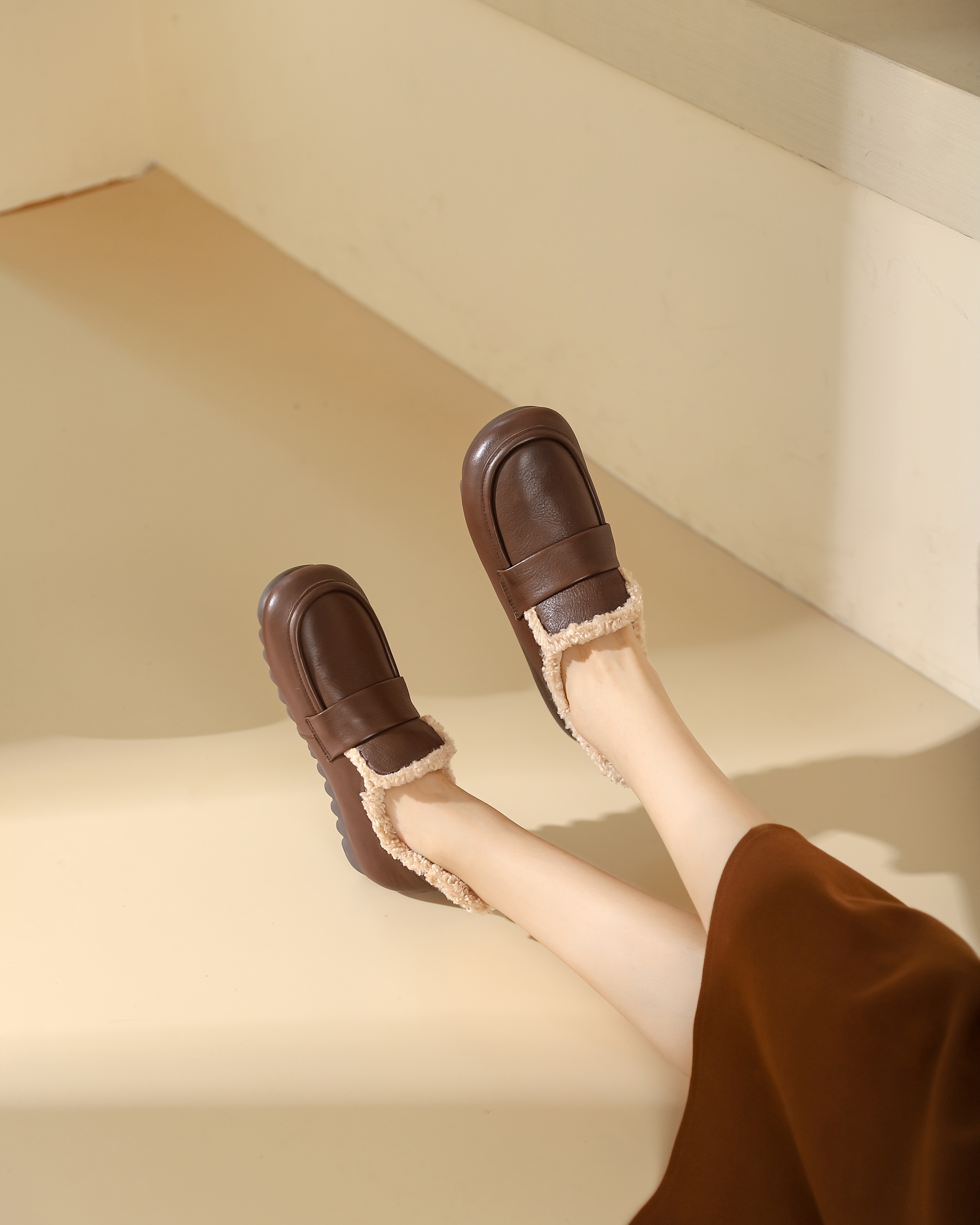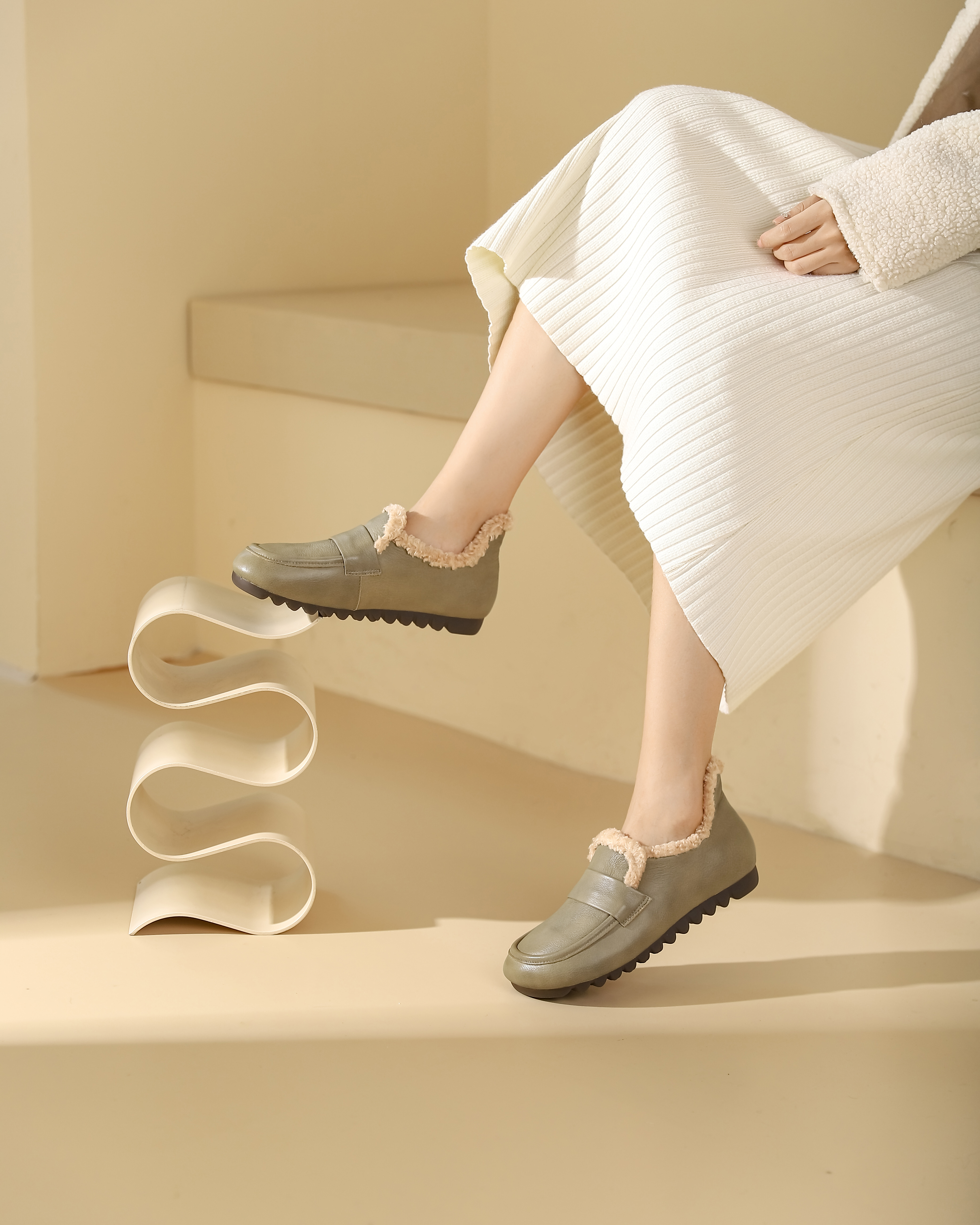 西村名物2023冬季新品复古圆头内里绒毛保暖短靴X23DM45271