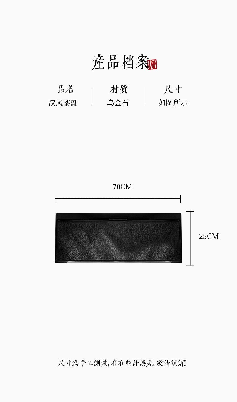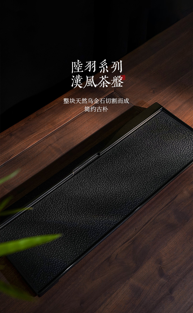 陆羽 汉风茶盘乌金石茶盘家用简约石头大茶台抛光现代石材轻奢茶具 尺寸70*25cm