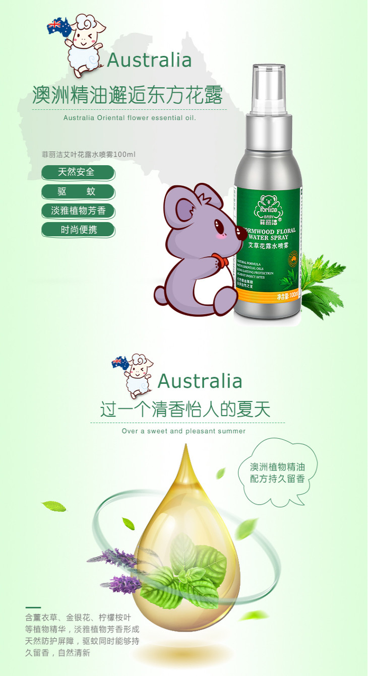 菲丽洁艾草花露水喷雾婴幼儿防蚊100ml