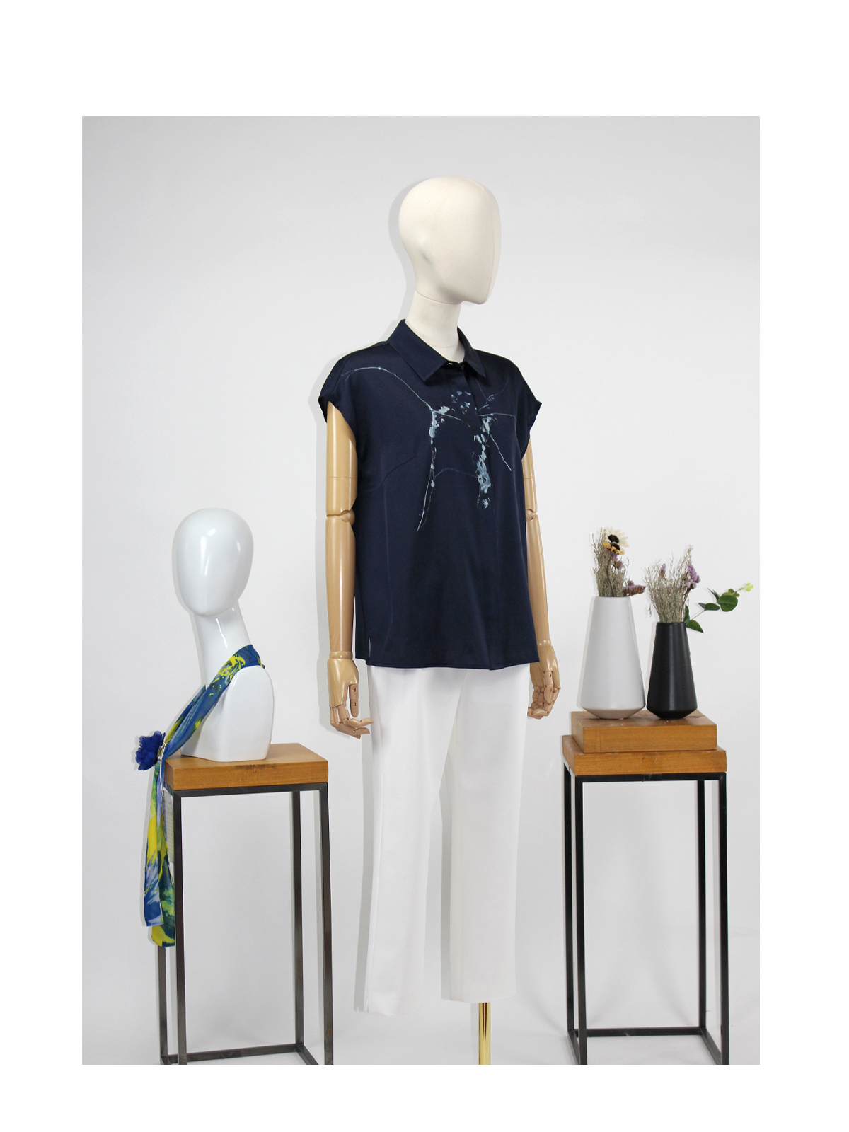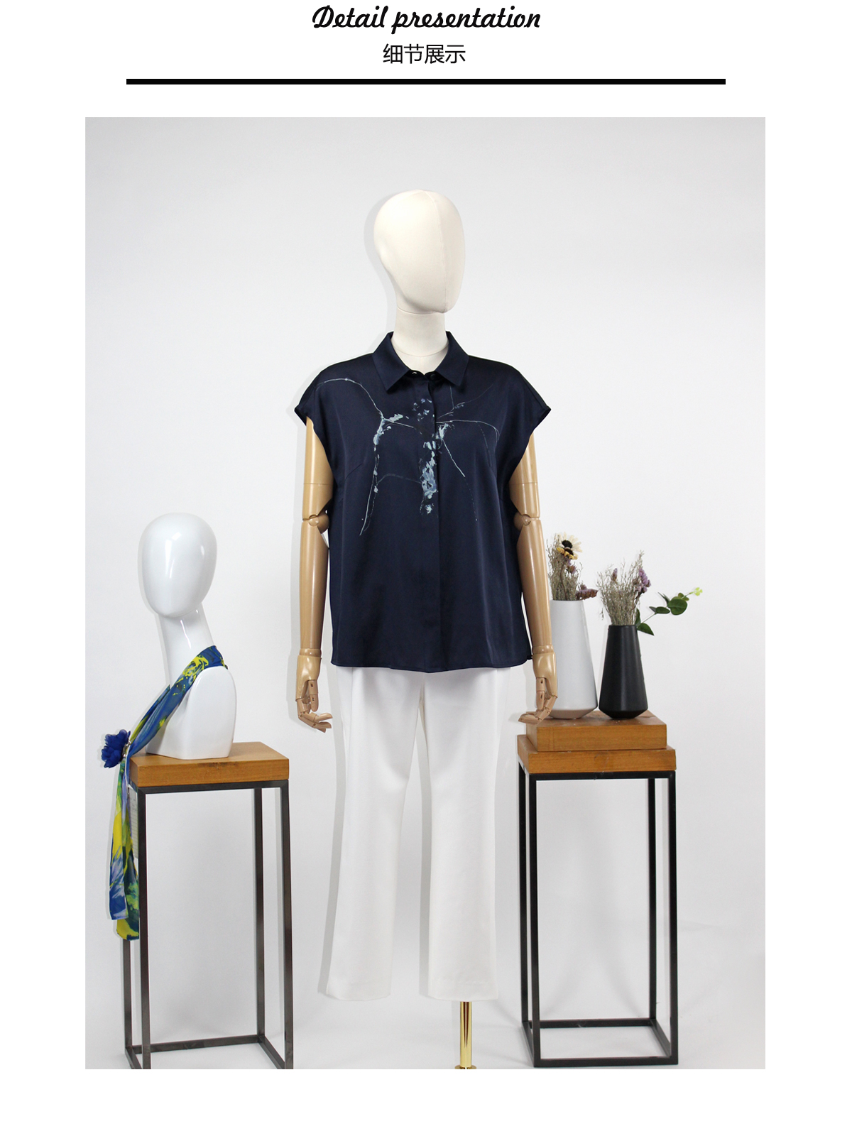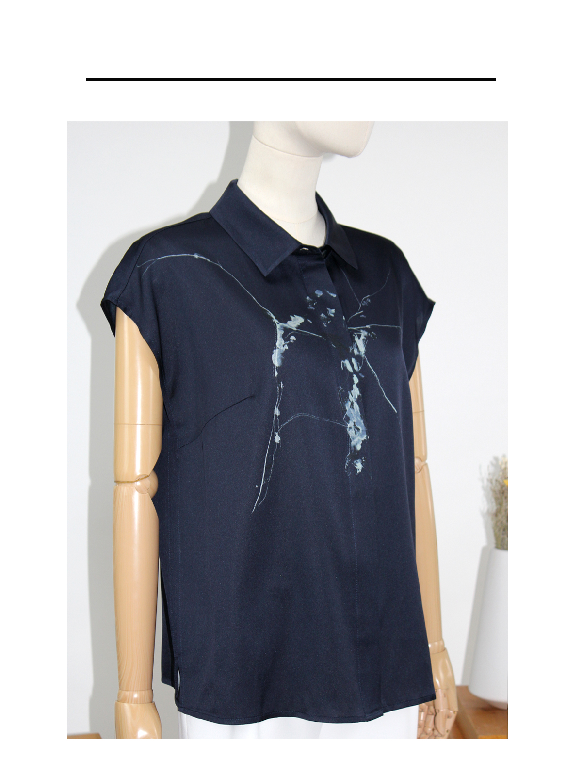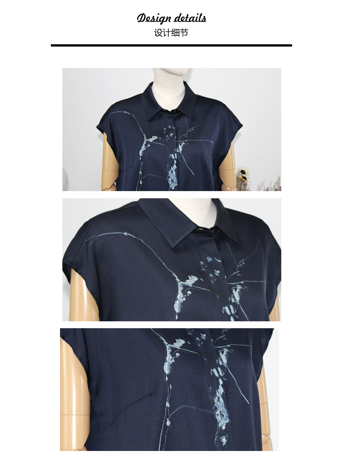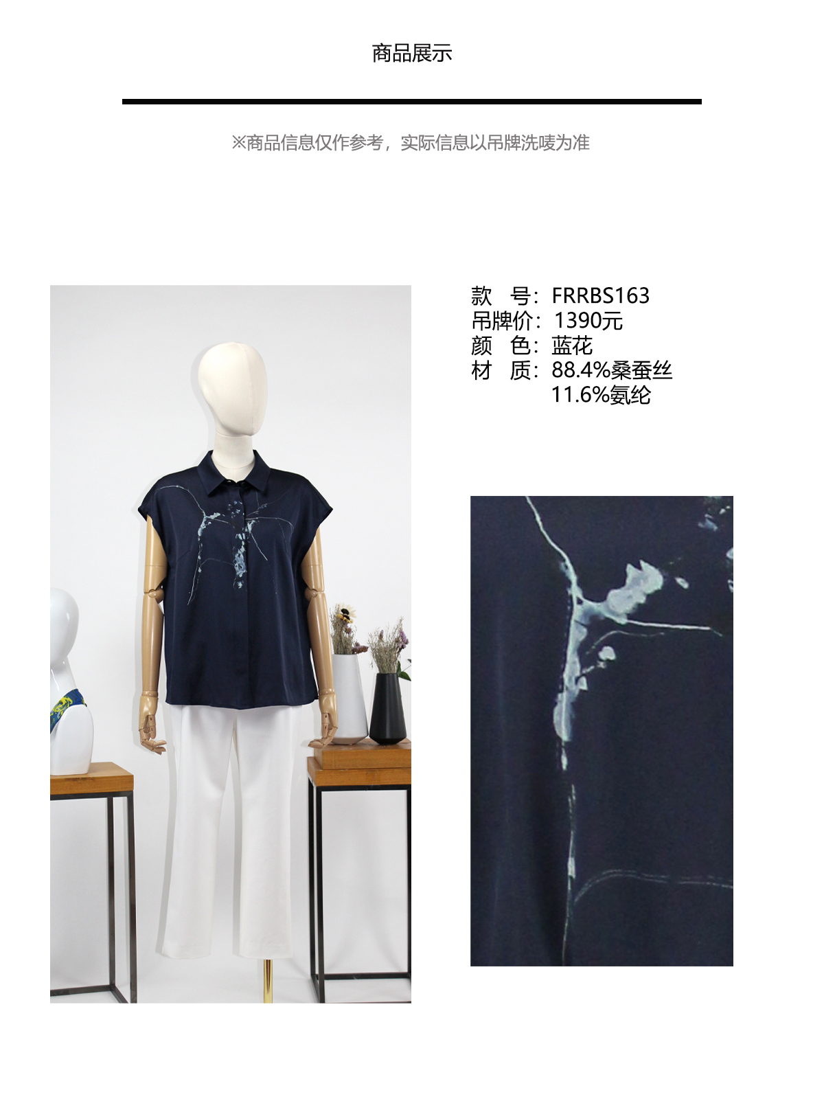 FOCALS福柯斯女装夏季新款桑蚕丝短袖印花上衣衬衫FRRBS163BV