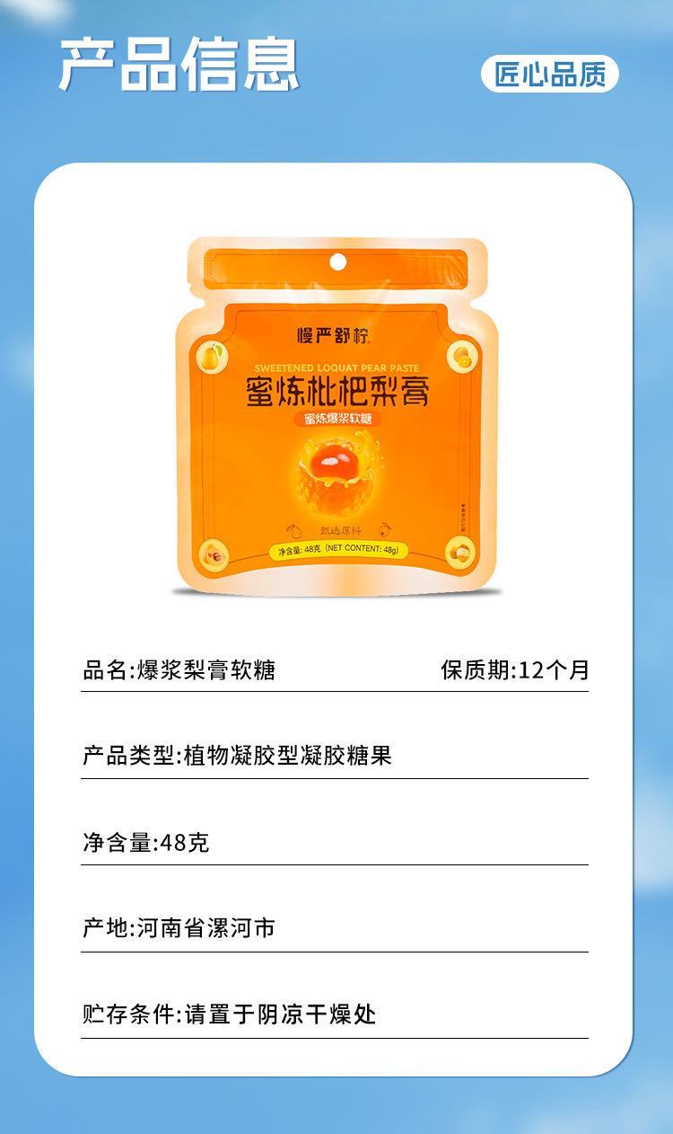 【慢严舒柠蜜炼枇杷软糖】梨膏添加量≥50%,枇杷汁添加量≥10%!软糯爆浆,清甜滋润!清新润fei,温和呵护!随时便携的润护小食!【QJ-J】