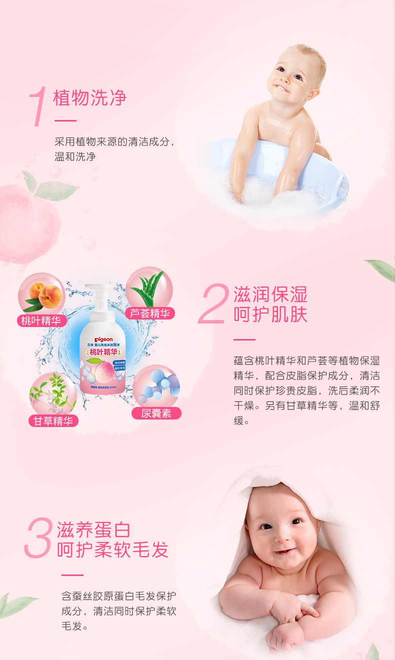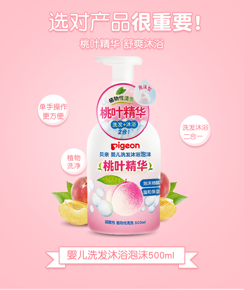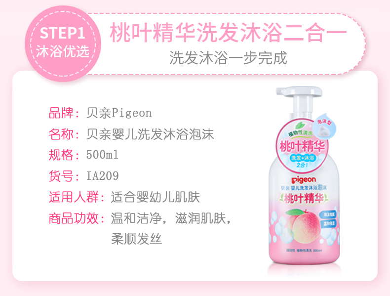五一专场-贝亲桃叶精华婴儿泡沫洗发沐浴露500ml IA209