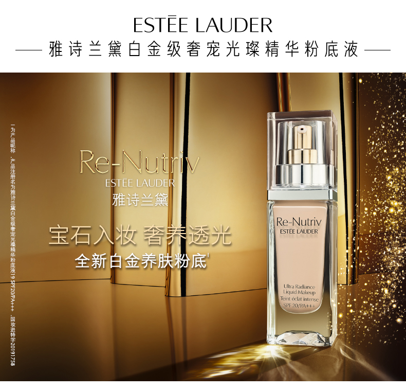 雅诗兰黛白金级奢宠光璨精华粉底液1W0-20# 偏白肤色 细腻养肤 遮瑕不暗沉
