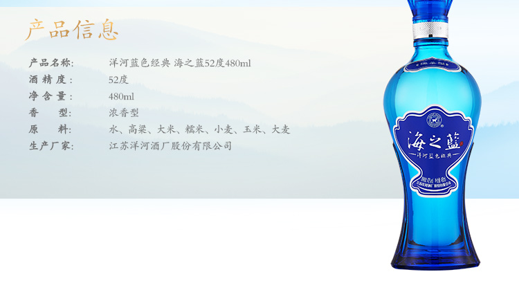 洋河海之蓝52度480ml*6 整箱装 扫描红包版 -jmw