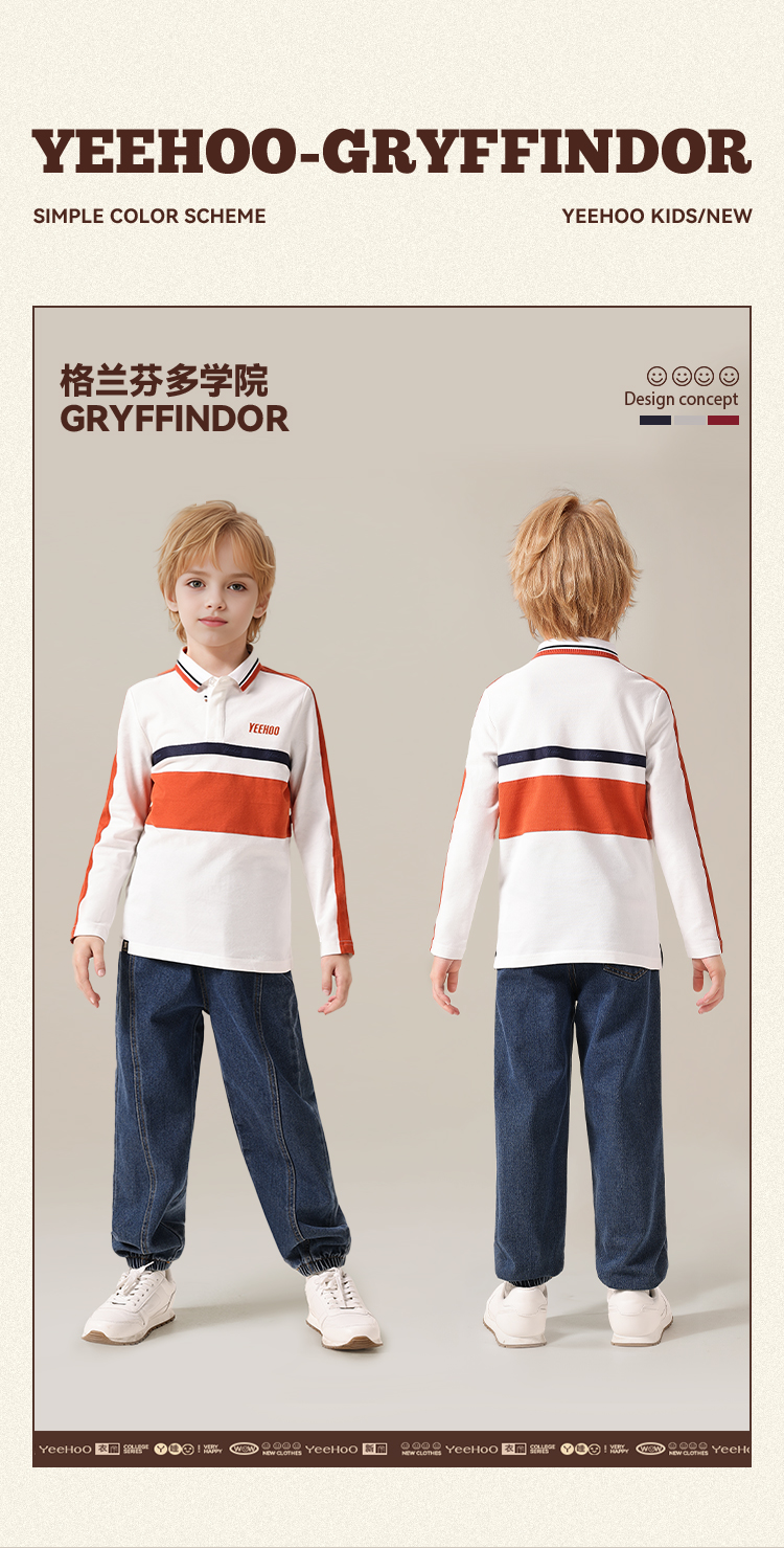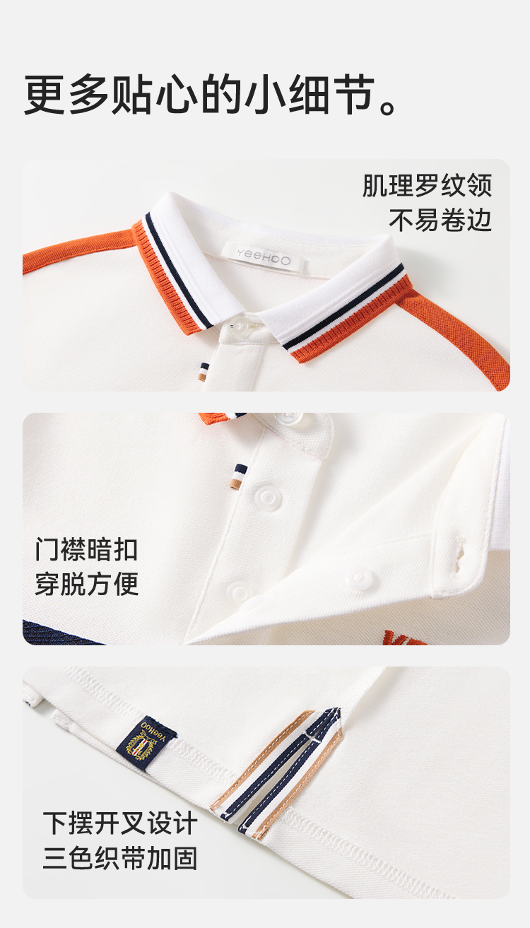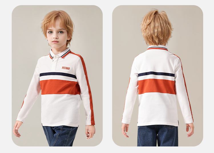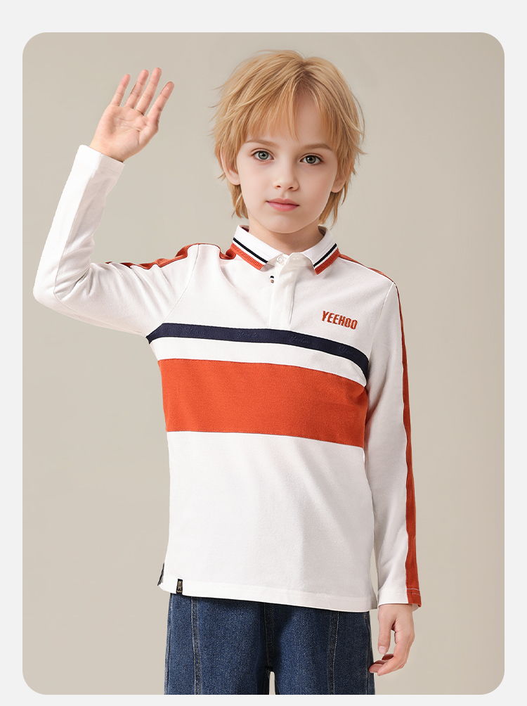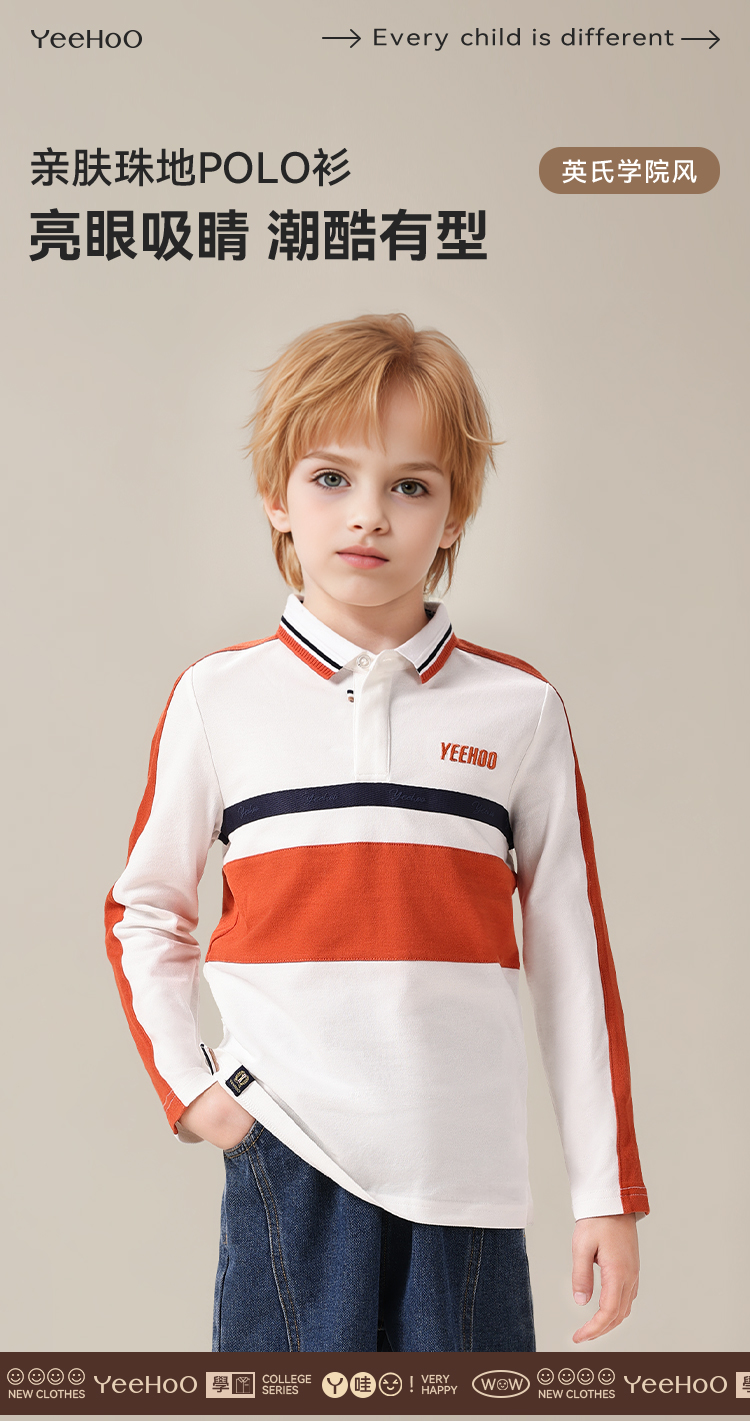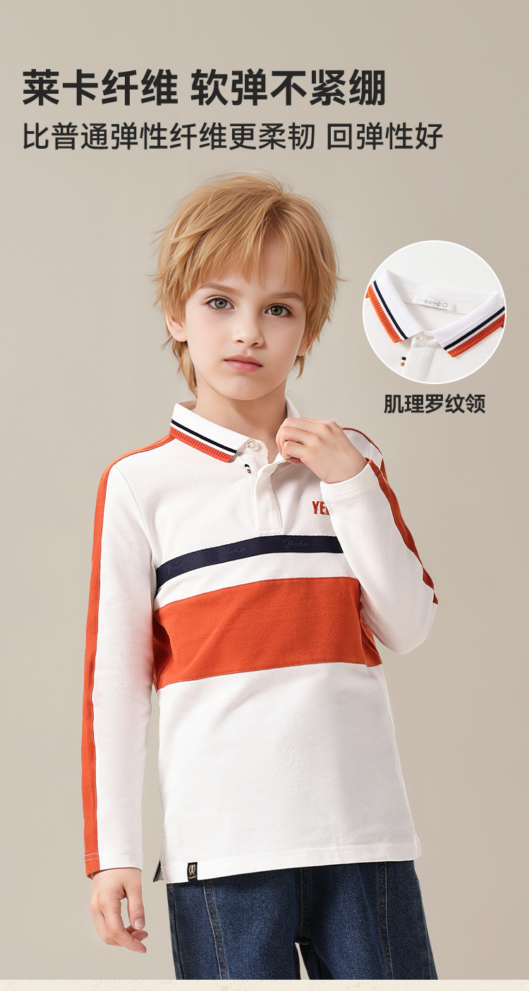 【英氏】【5A抑菌+弹性莱卡】【140-170】男童春秋长袖POLO衫