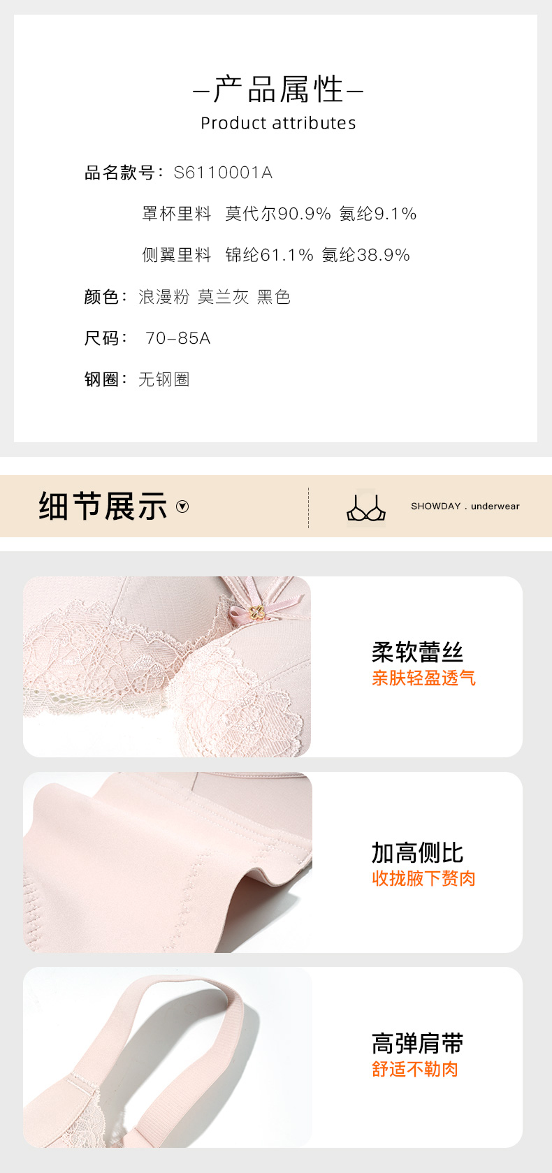 【6.9折限时优惠】【A杯单件】【秀黛】自由之境无钢圈中厚杯文胸S6110001A【门店同款】