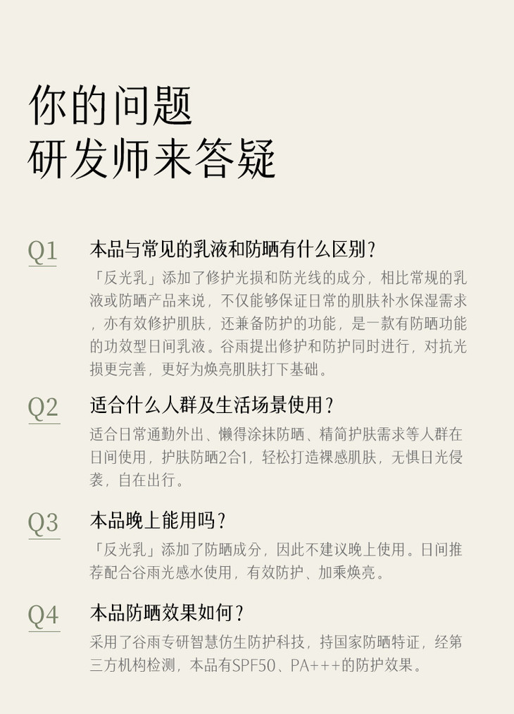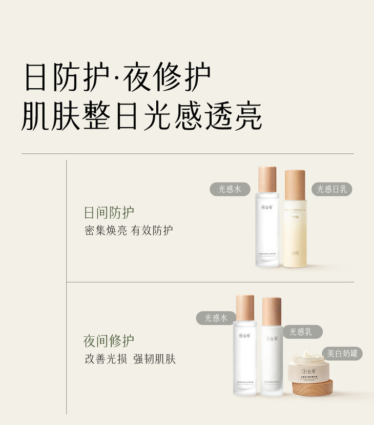 - 谷雨,更适合中国人肤质的植萃美白。专研中华珍稀美白植萃光甘草定,深入研究中国人肤质特点,打造中国女性独有的仙气白。