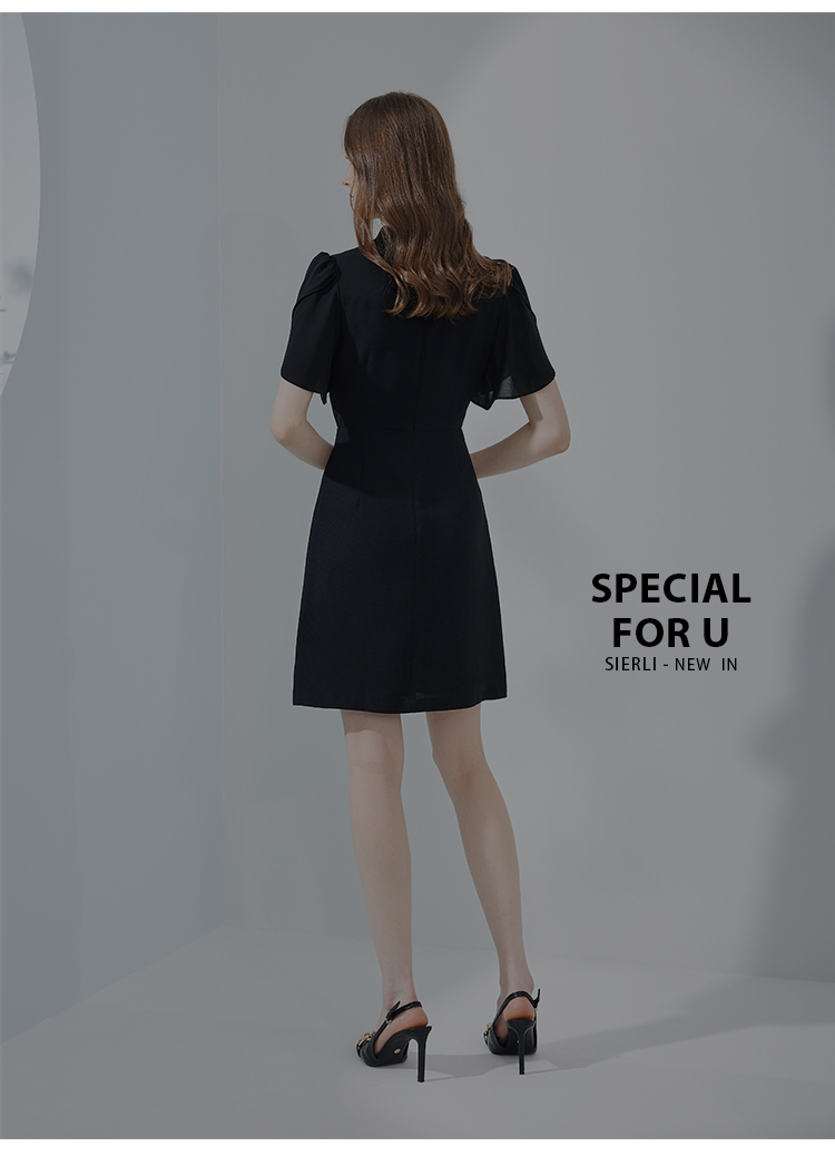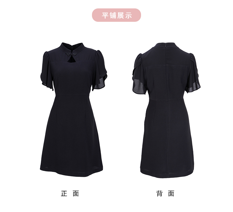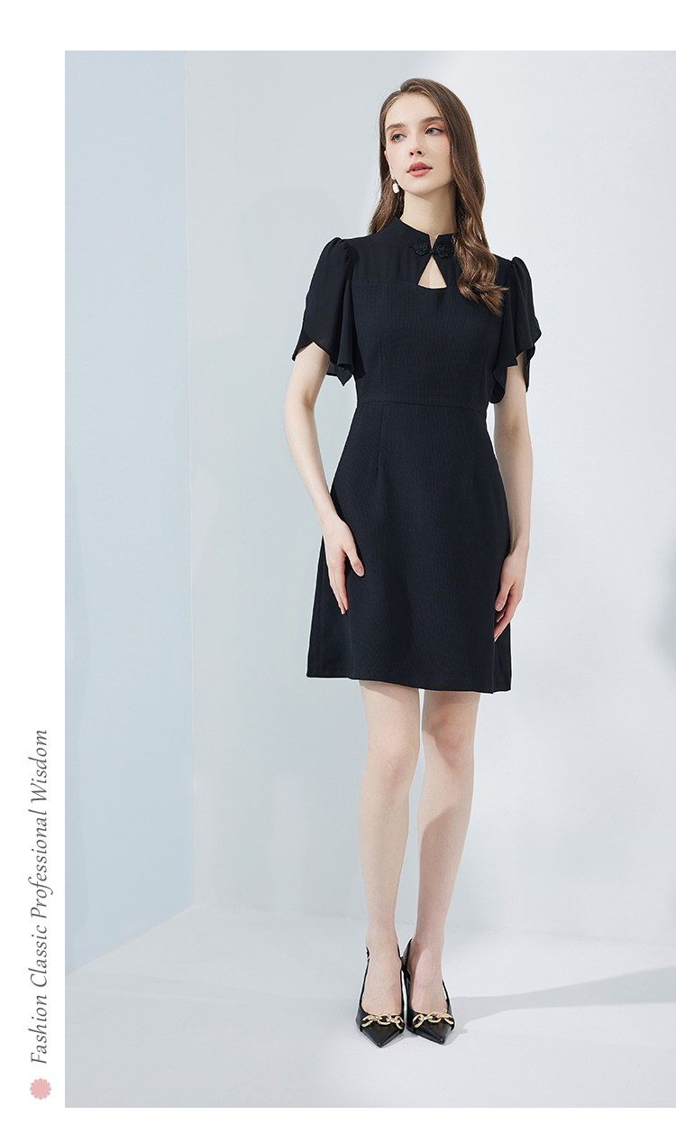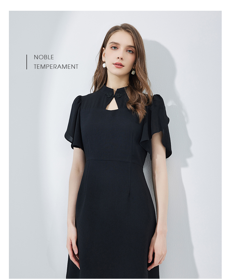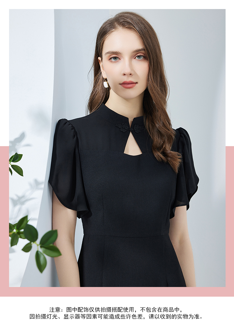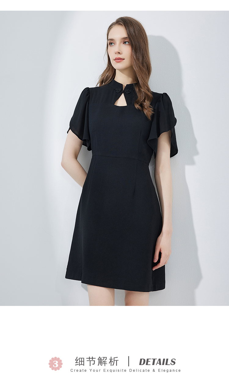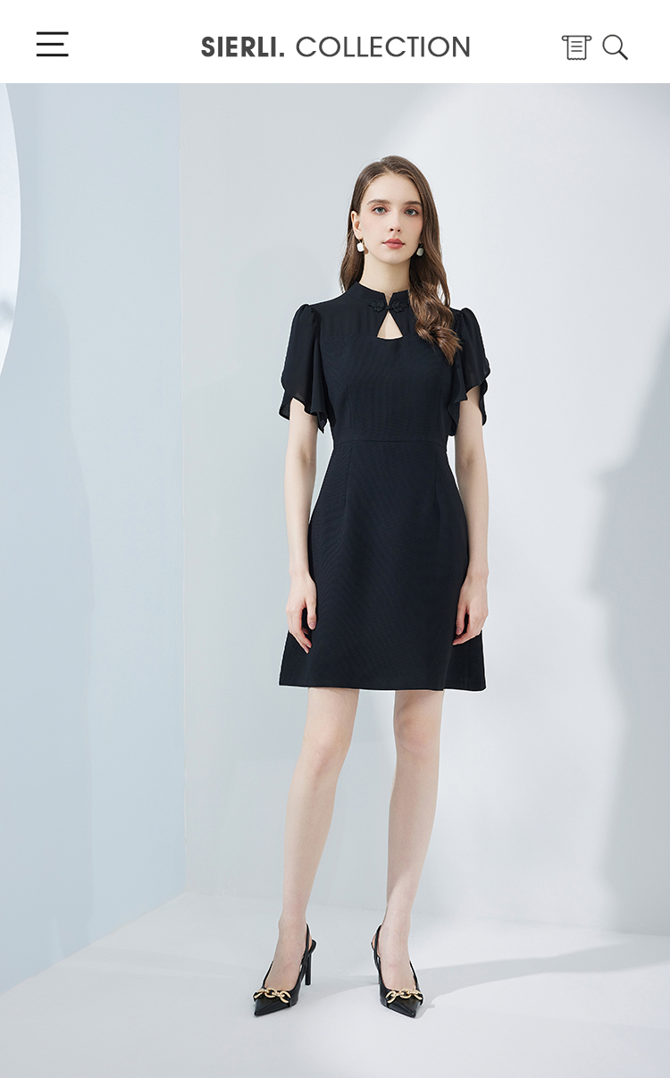 NF8E9斯尔丽瑟俪2023夏季新款改良版中国风旗袍领荷叶袖收腰俏丽连衣裙