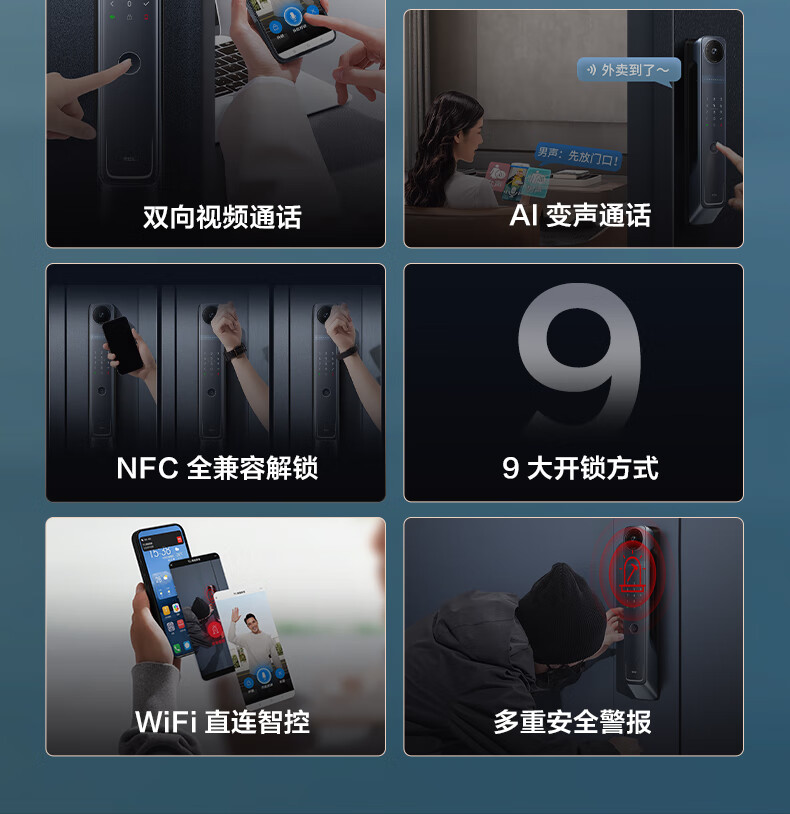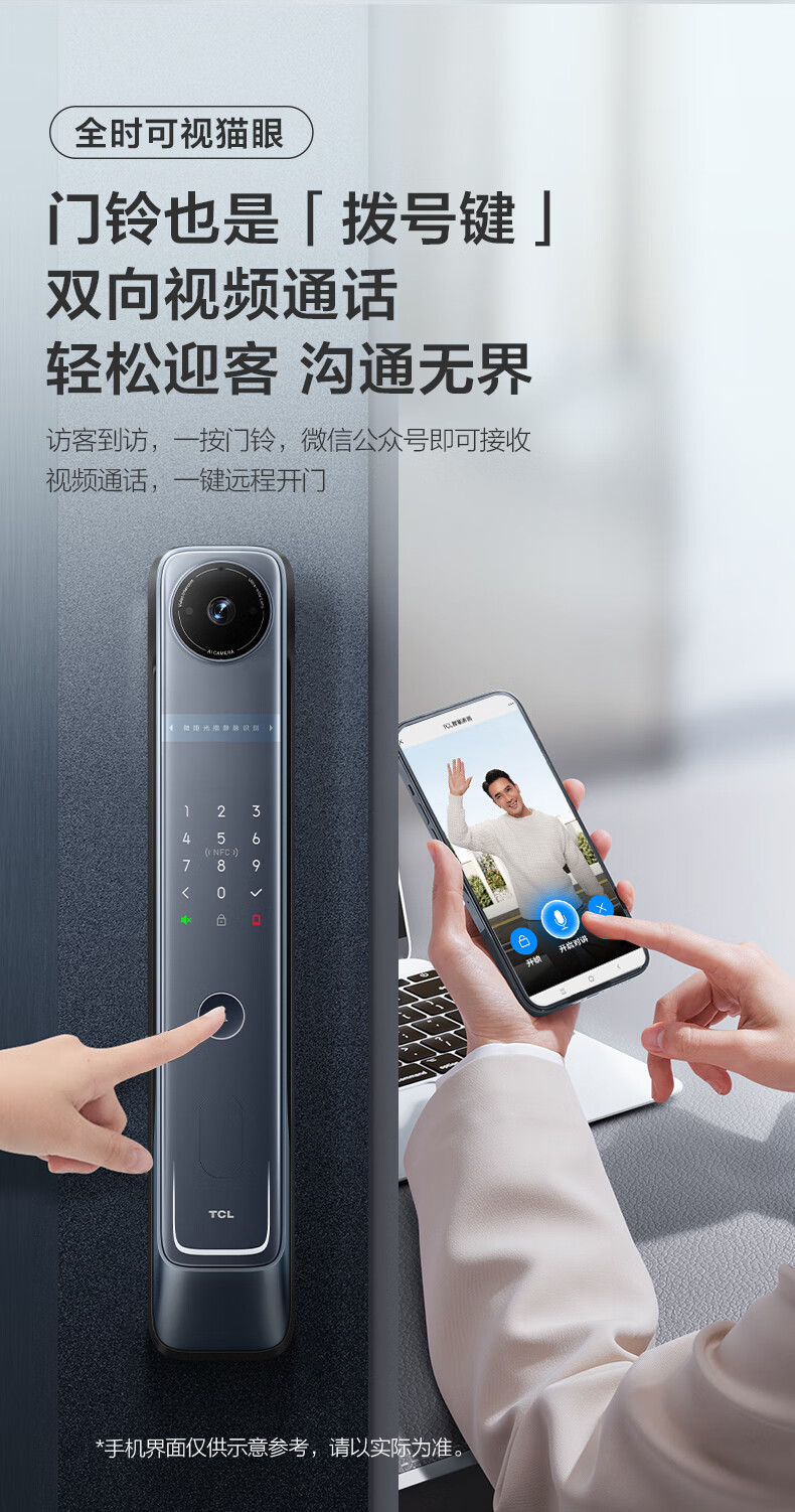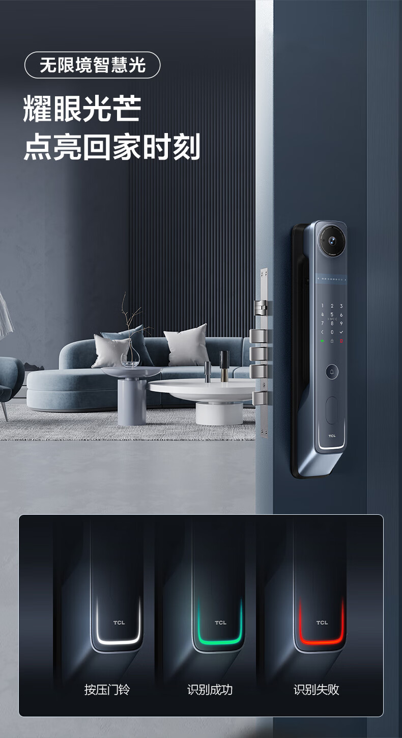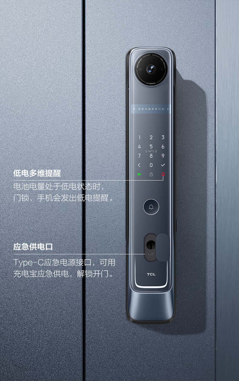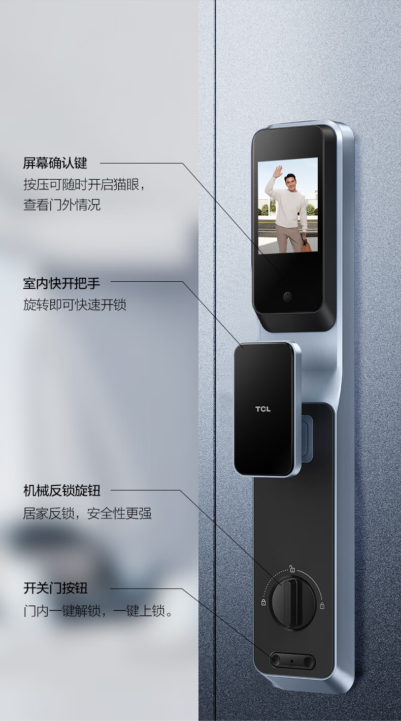 TCLTCL可视安全指静脉大屏猫眼智能门锁C10R_天际蓝C10R