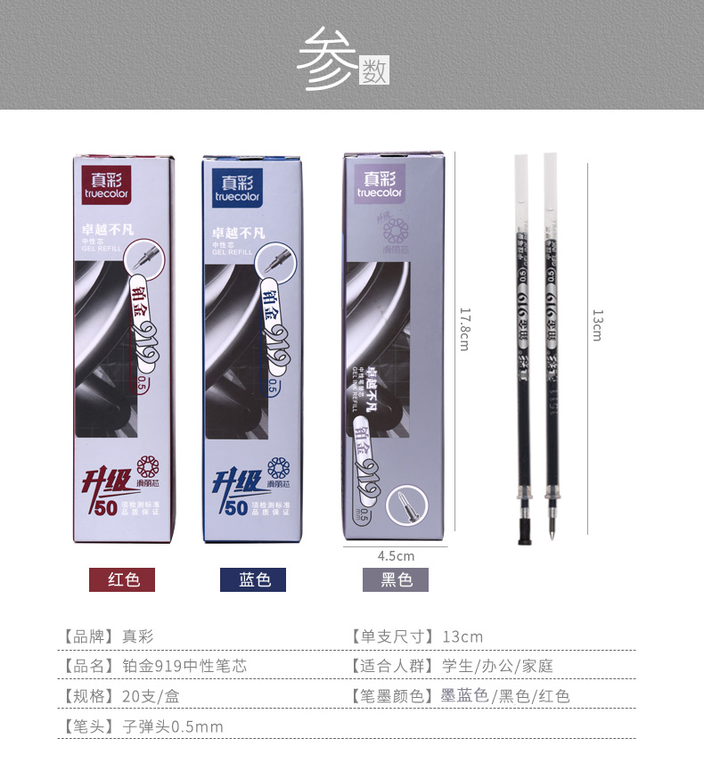 真彩铂金装中性笔芯办公学生考试学习用品笔芯