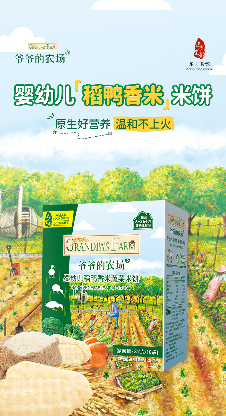 爷爷的农场婴幼儿稻鸭香米蔬菜米饼32g