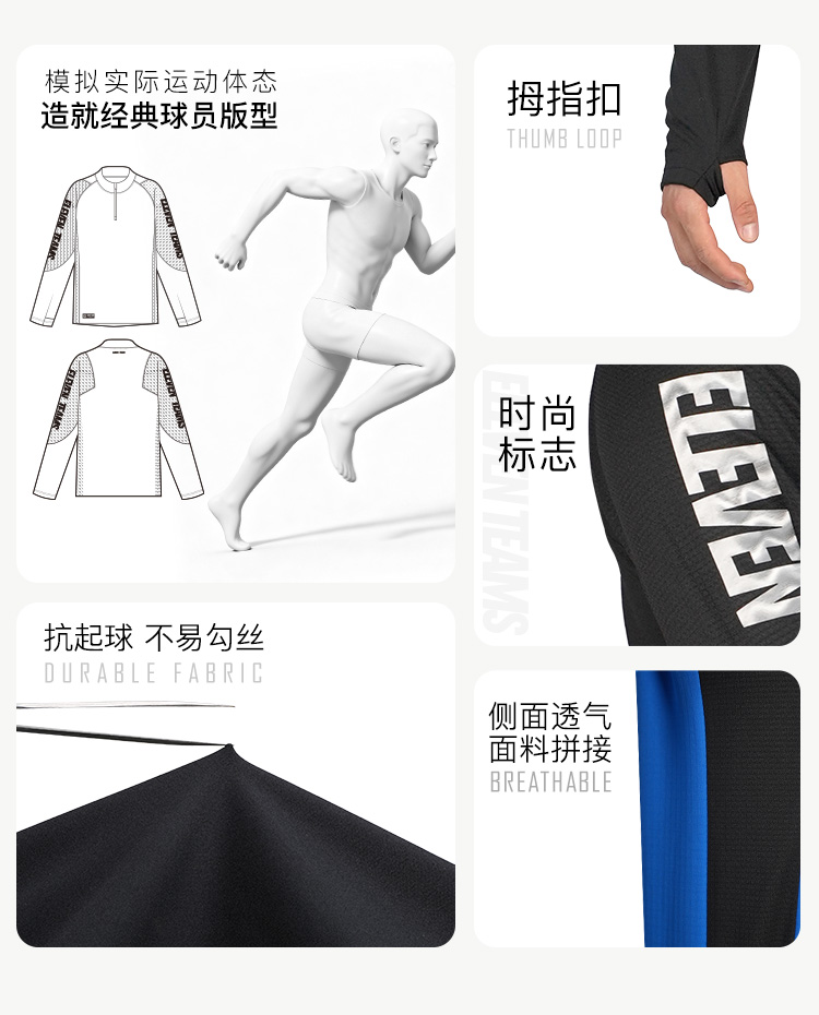 小李子Eleventeams高弹透气保暖综合足球运动半拉链训练服