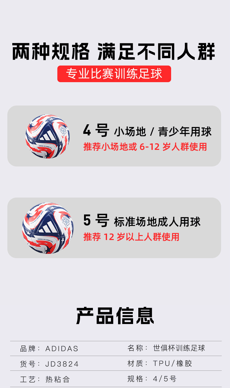 小李子阿迪达斯25赛季世俱杯比赛足球4号5号球热粘合赛事球JD3824