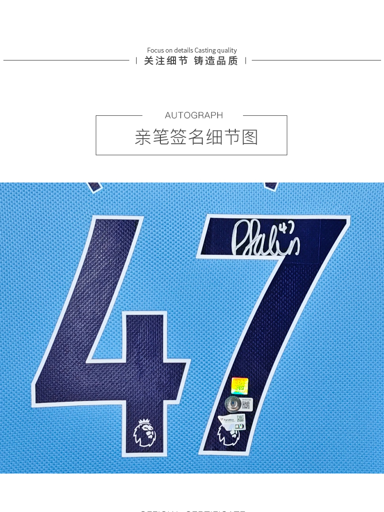 收藏系列 福登 曼城队47号 20/21 亲笔签名球衣