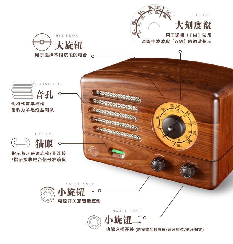 猫王典藏级收音机/R602BPW复古无线蓝牙音响