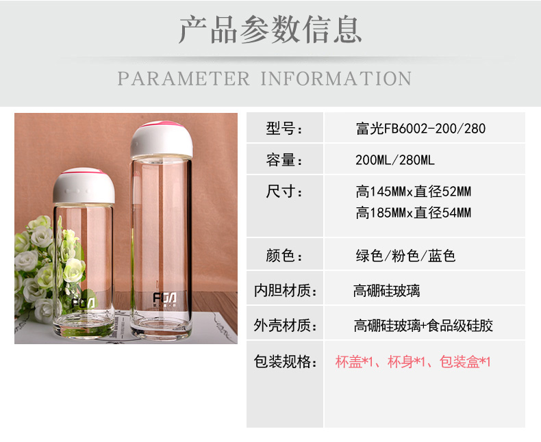富光玻璃杯(清新/FGA/280ML)FB6002-280(颜色随机)