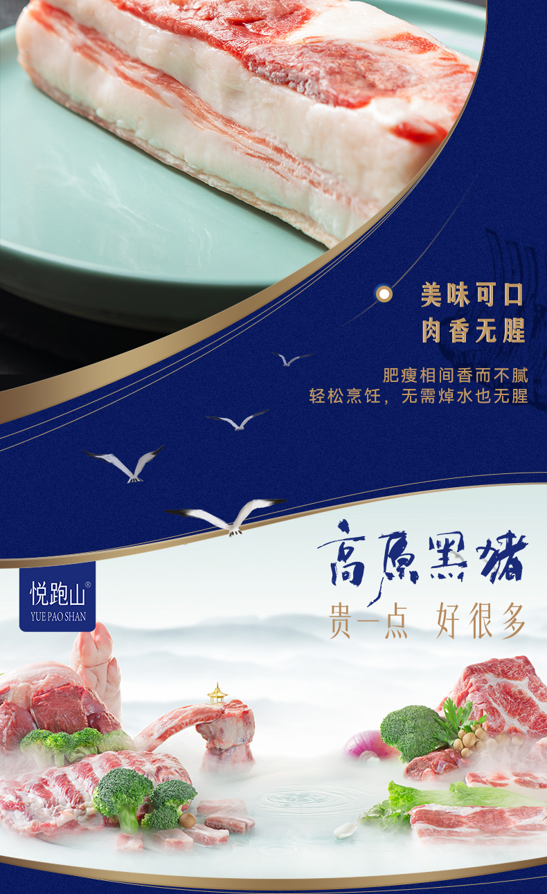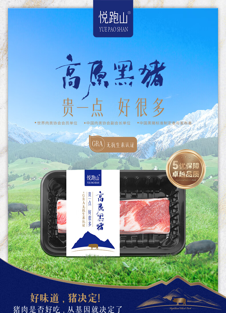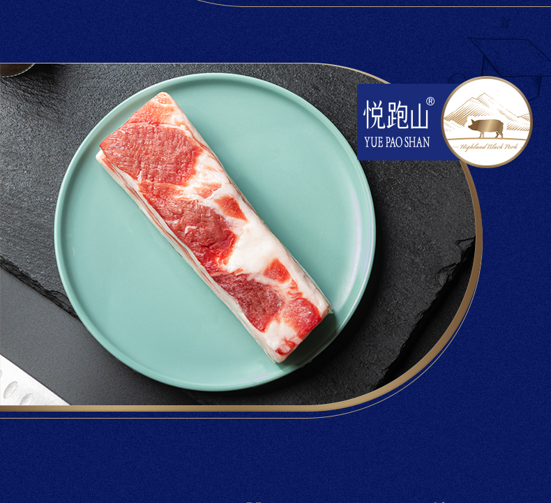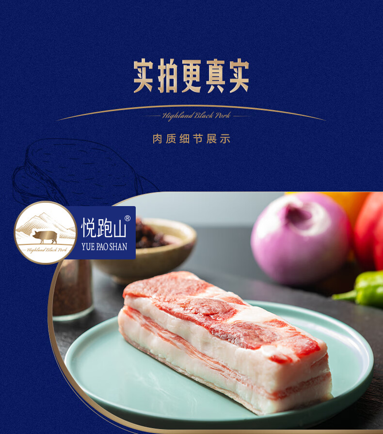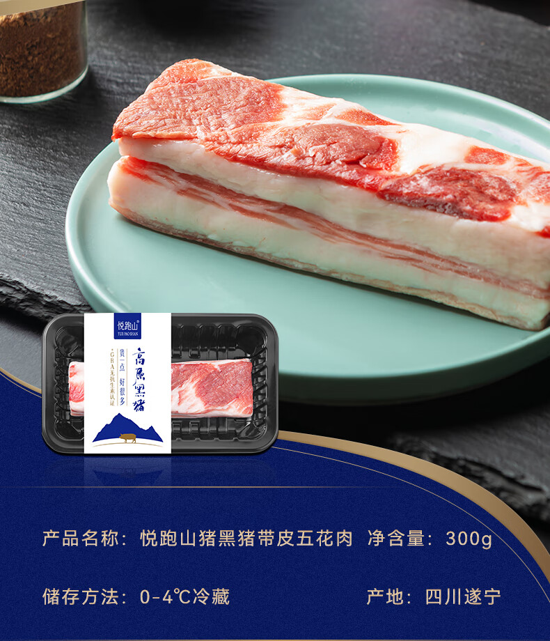 冷鲜 悦跑山猪黑猪五花肉块 300g/盒(红烧/烤肉)