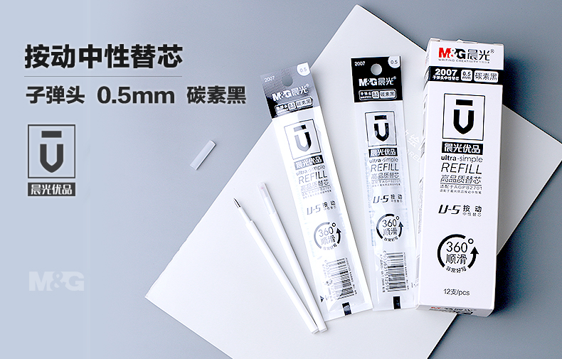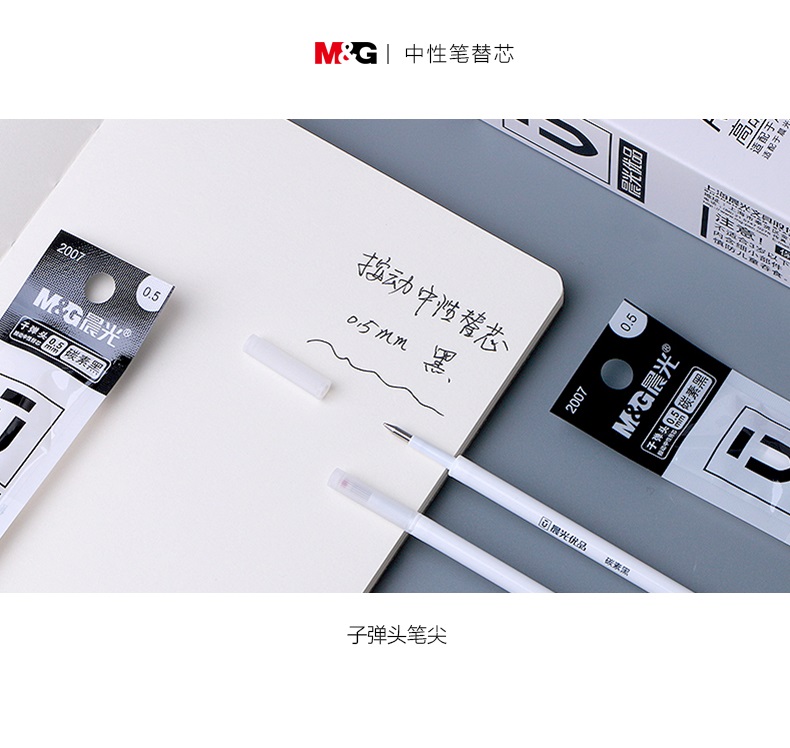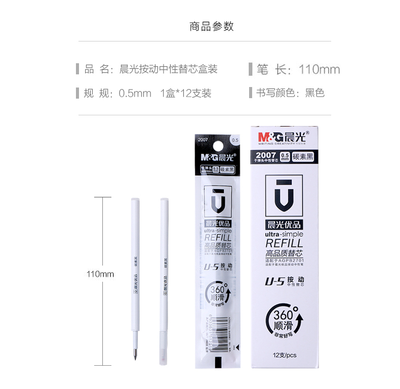 晨光优品高品质中性替芯2007黑0.5学生办公笔芯书写
