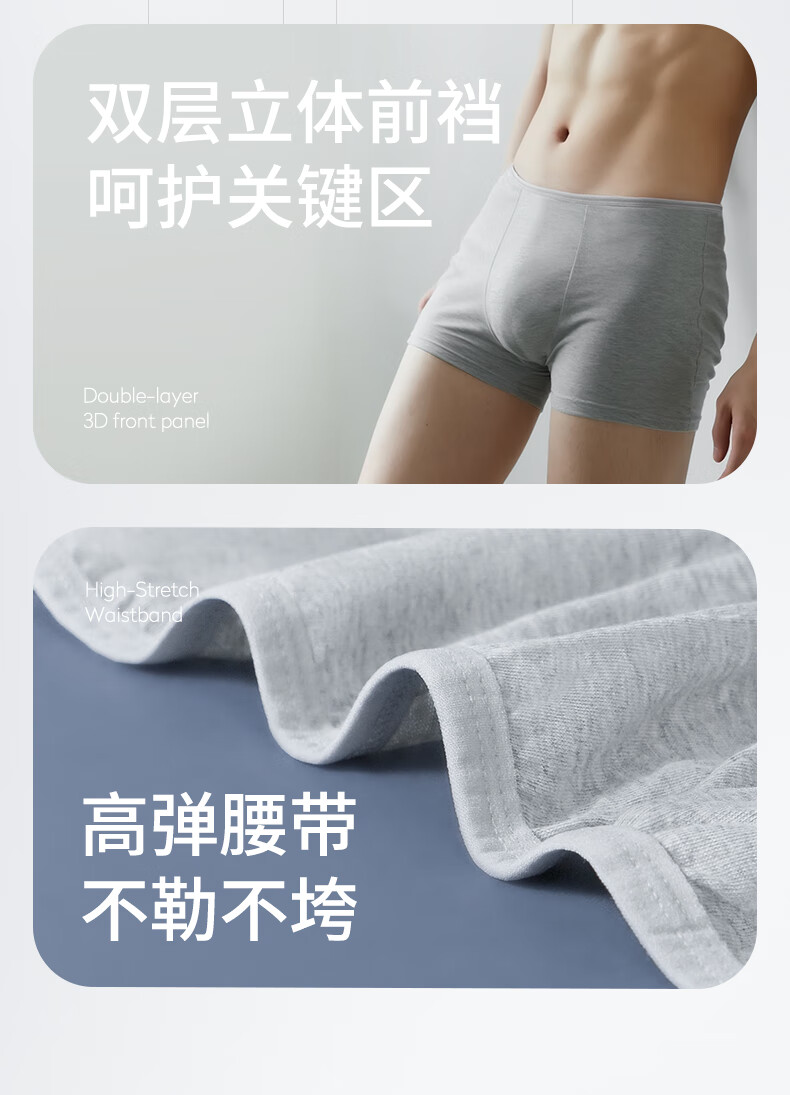 焦趣灭菌纯棉内裤男士XXXL 4条装