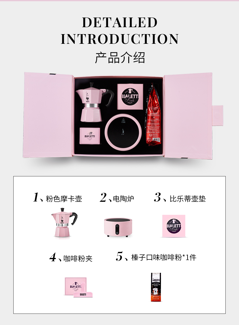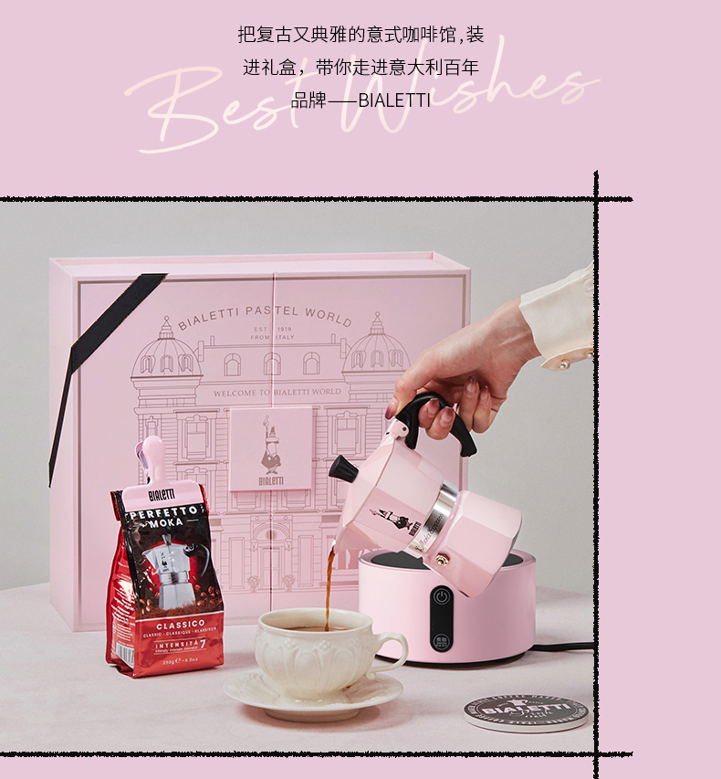 比乐蒂/Bialetti 粉色摩卡壶 手冲咖啡壶双阀意大利进口浓缩咖啡机伴手礼新婚礼物 粉色双阀礼盒 100ml