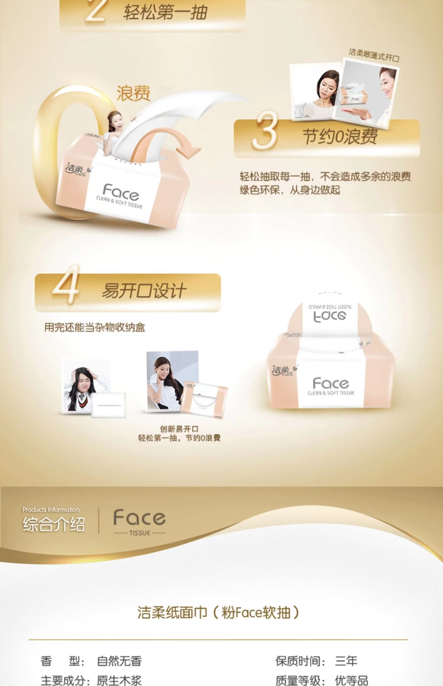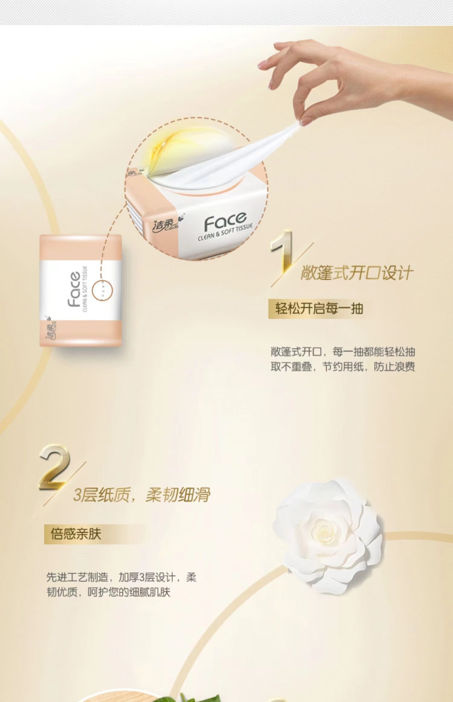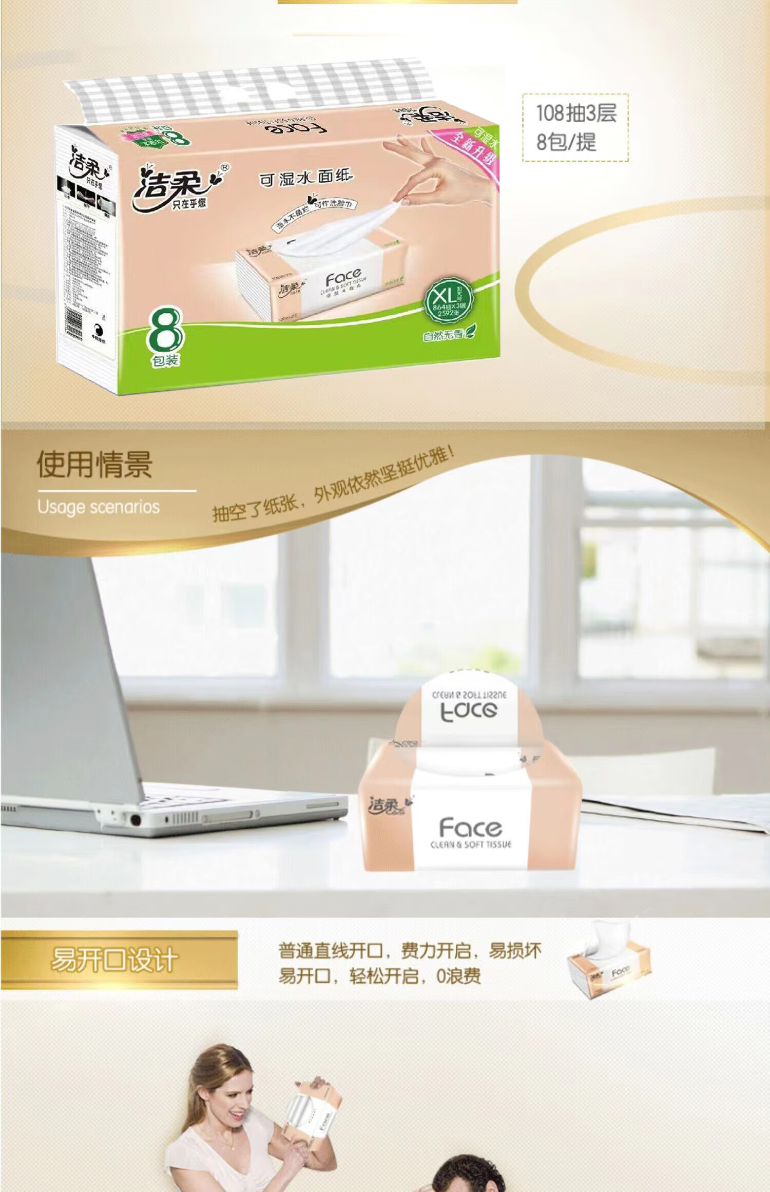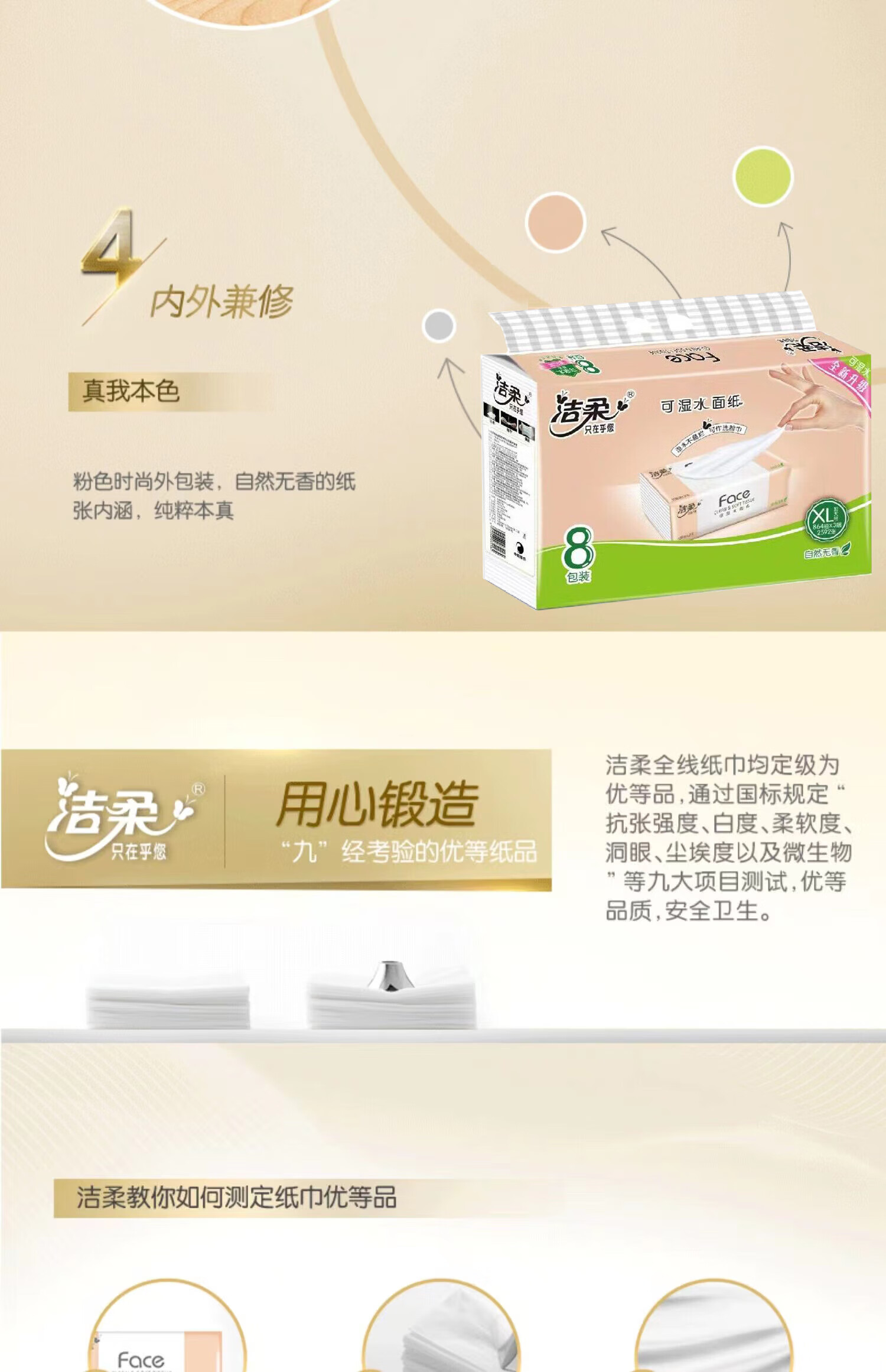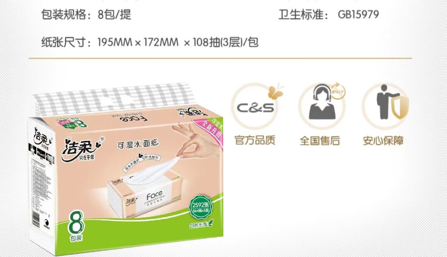 洁柔 3层Face粉软抽纸 108抽*8包/提