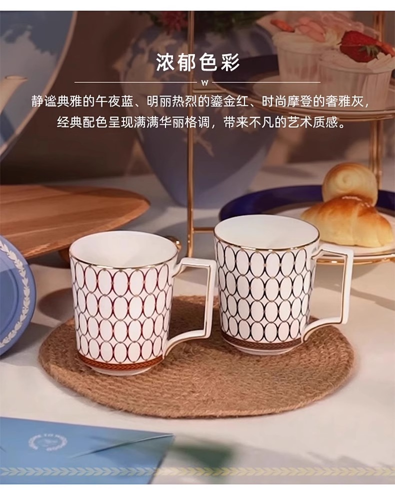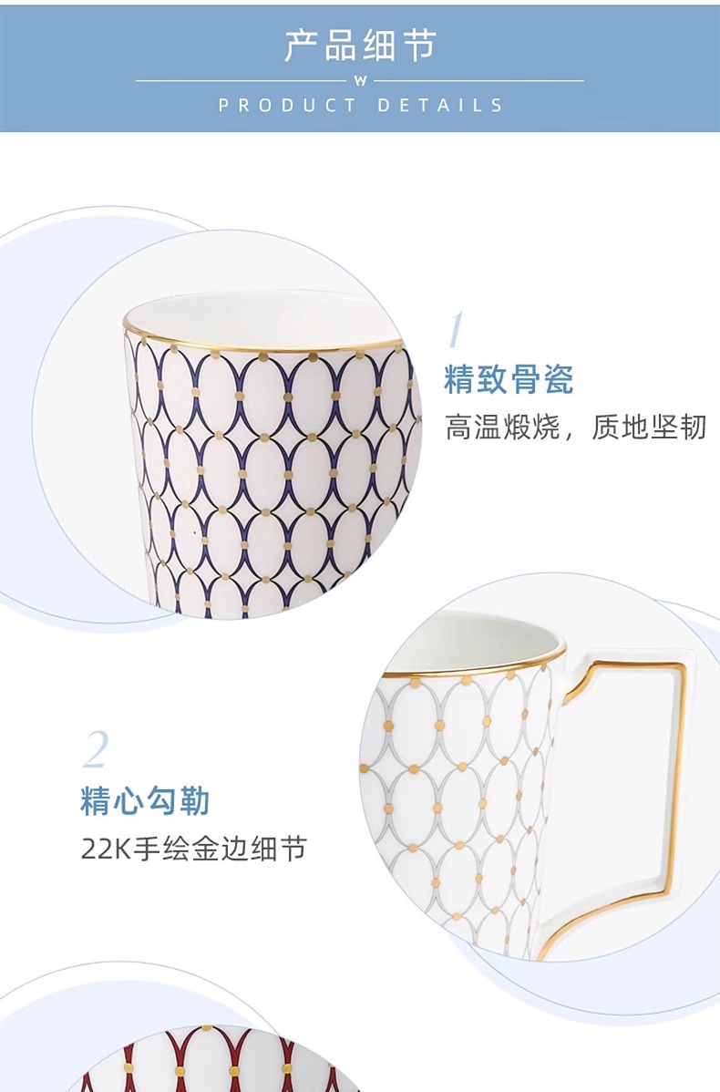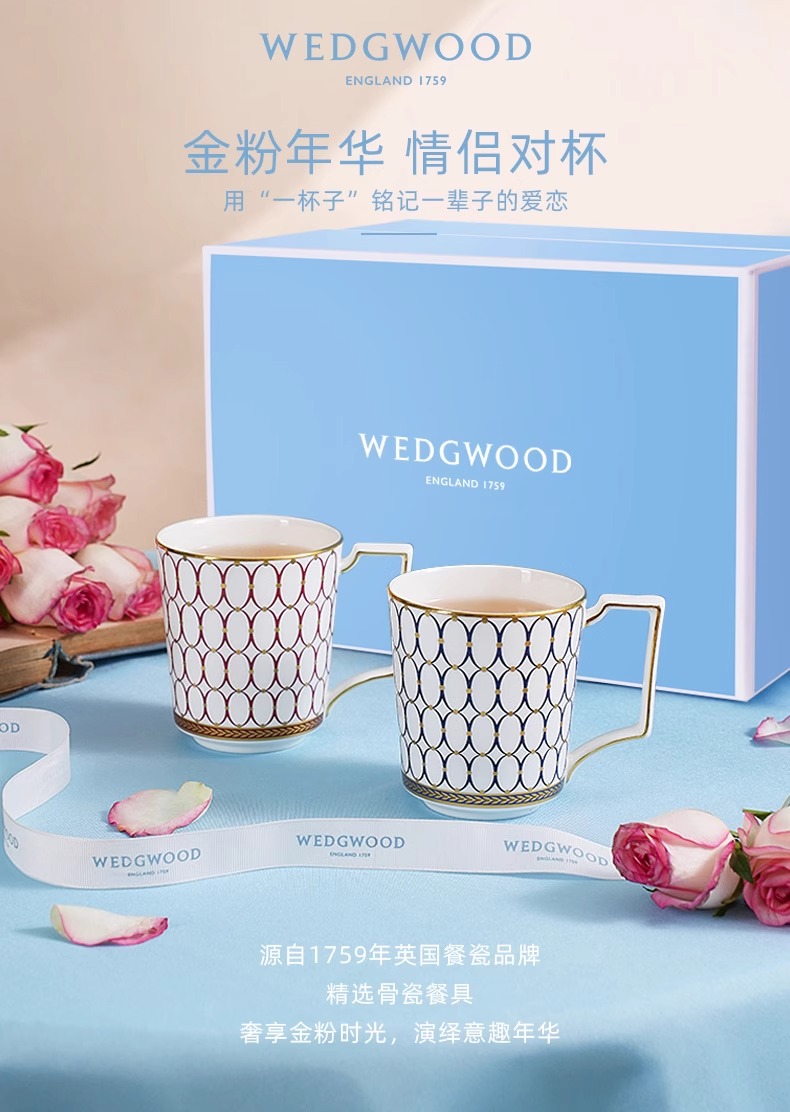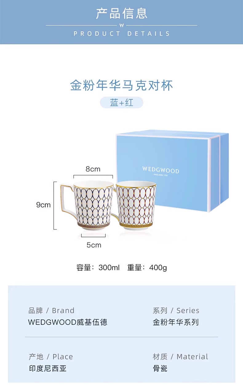 WEDGWOOD威基伍德金粉年华马克杯骨瓷水杯对杯威基伍德金粉年华婆金红+午夜蓝双马克杯套装