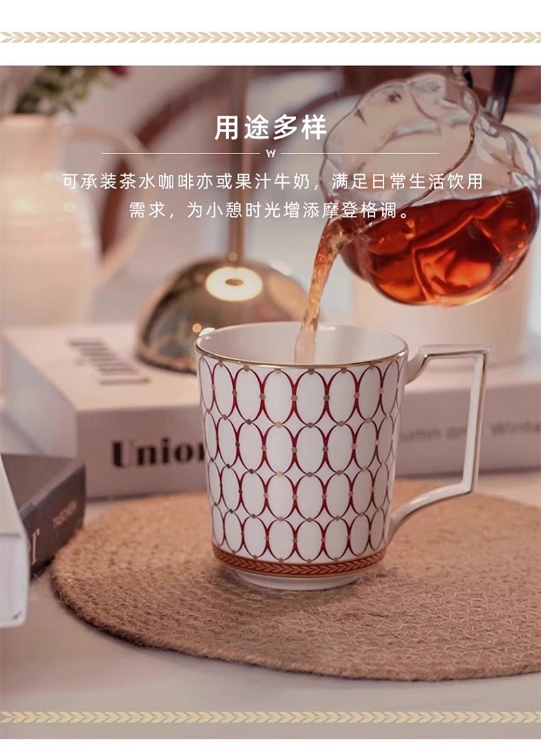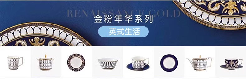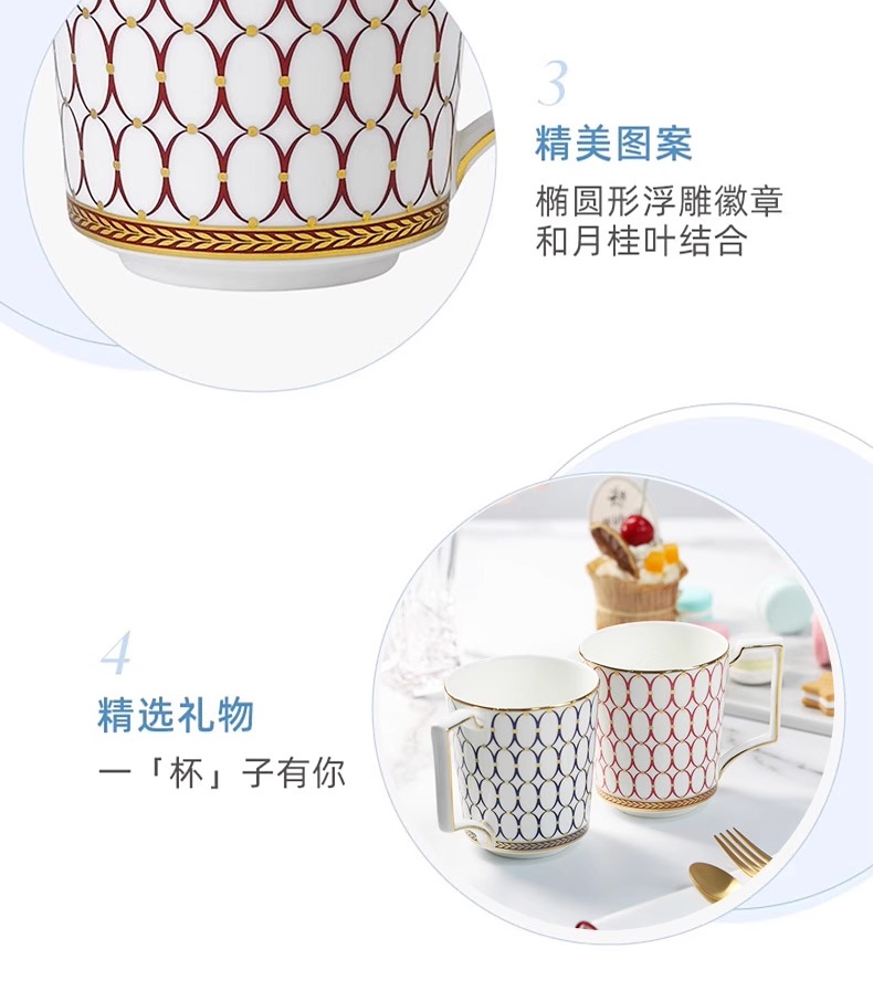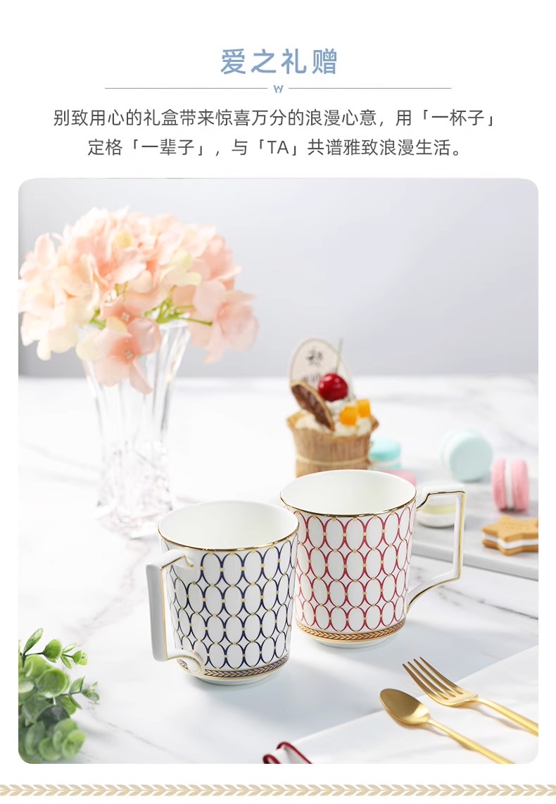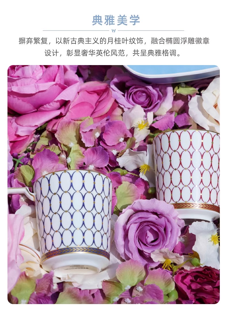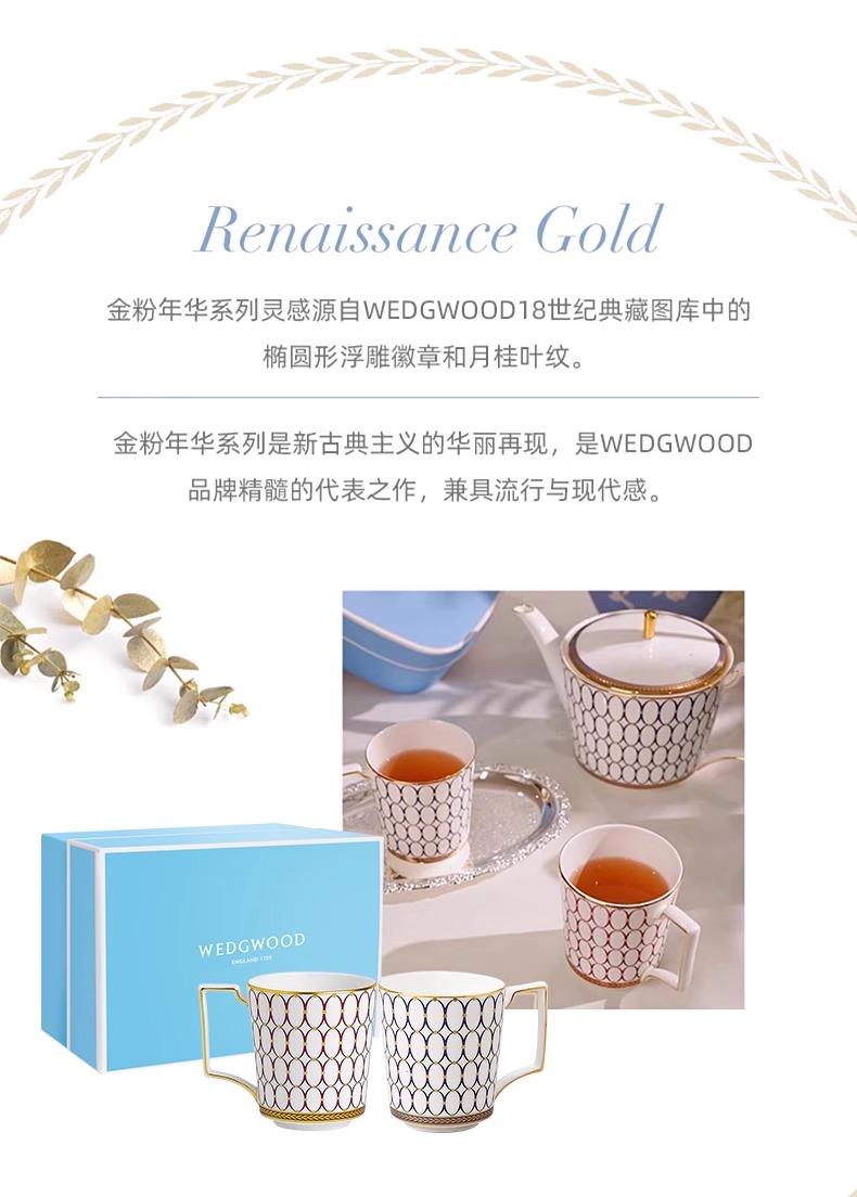 WEDGWOOD威基伍德金粉年华马克杯骨瓷水杯对杯威基伍德金粉年华婆金红+午夜蓝双马克杯套装